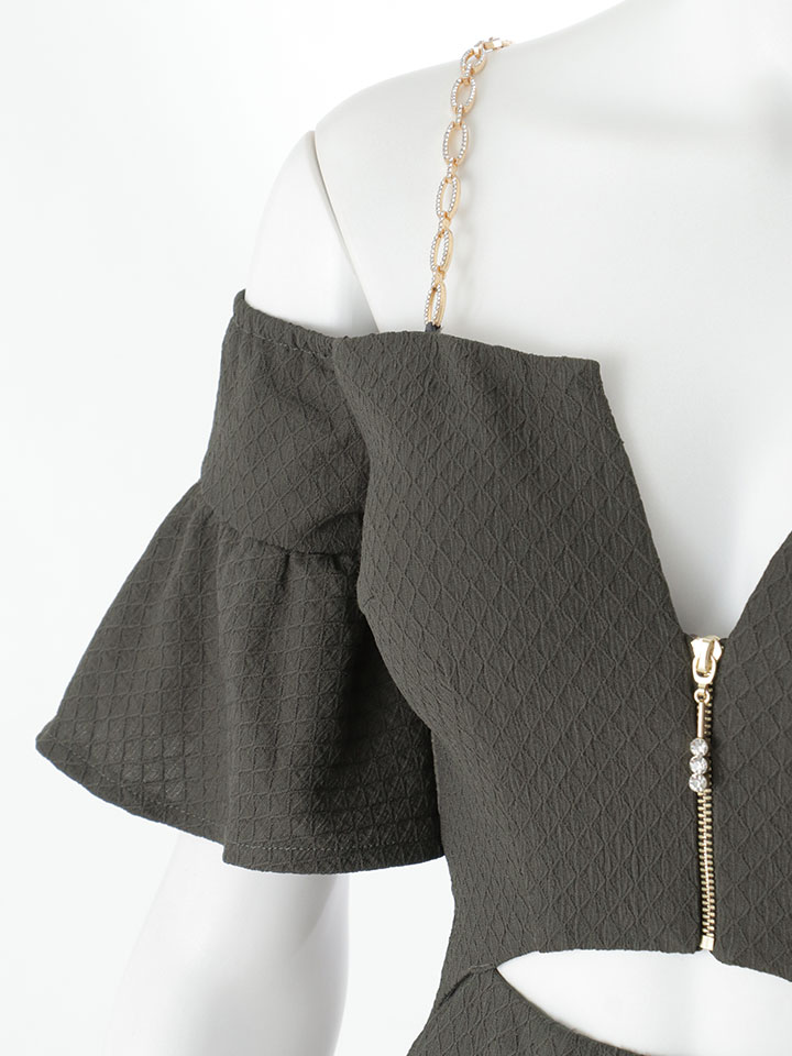 【即日発送】ビジューオフショルフロントジップタイトミニドレス/キャバドレス【XS-Lサイズ/1カラー】[OF03] 【YN】dzcgAG [5694YNdzcgAG-250816-1]