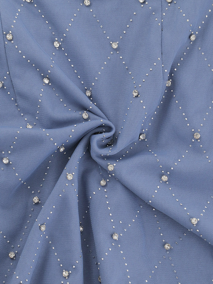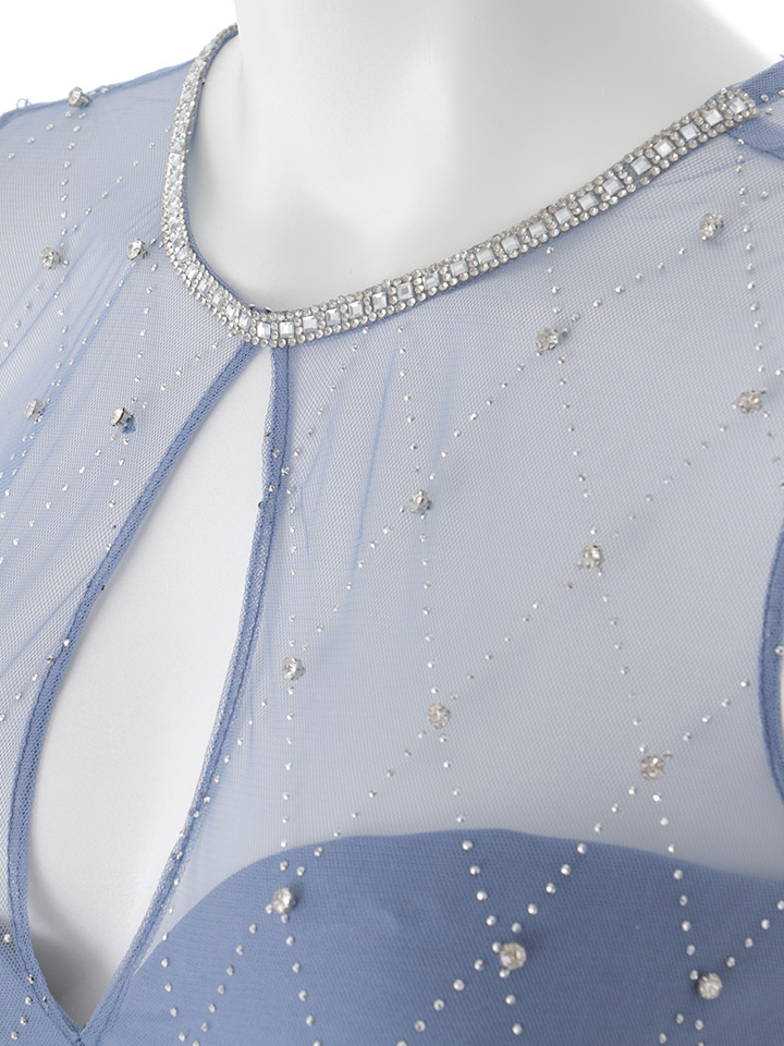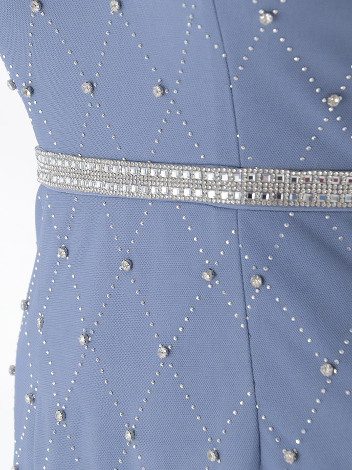 華麗な色合いの大人ブルーに大粒ビジューがキラキラ輝く主役級な一着