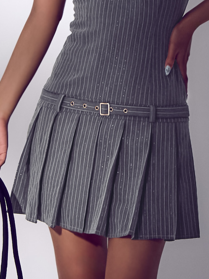 ラメストライププリーツミニドレス/キャバドレス【XS-Mサイズ/1カラー】[OF03] 【YN】dzwAG [5644YNdzwAG-250707-1]