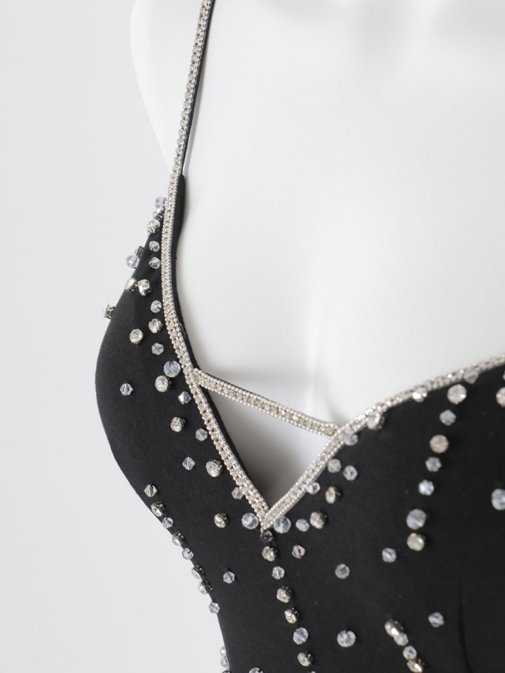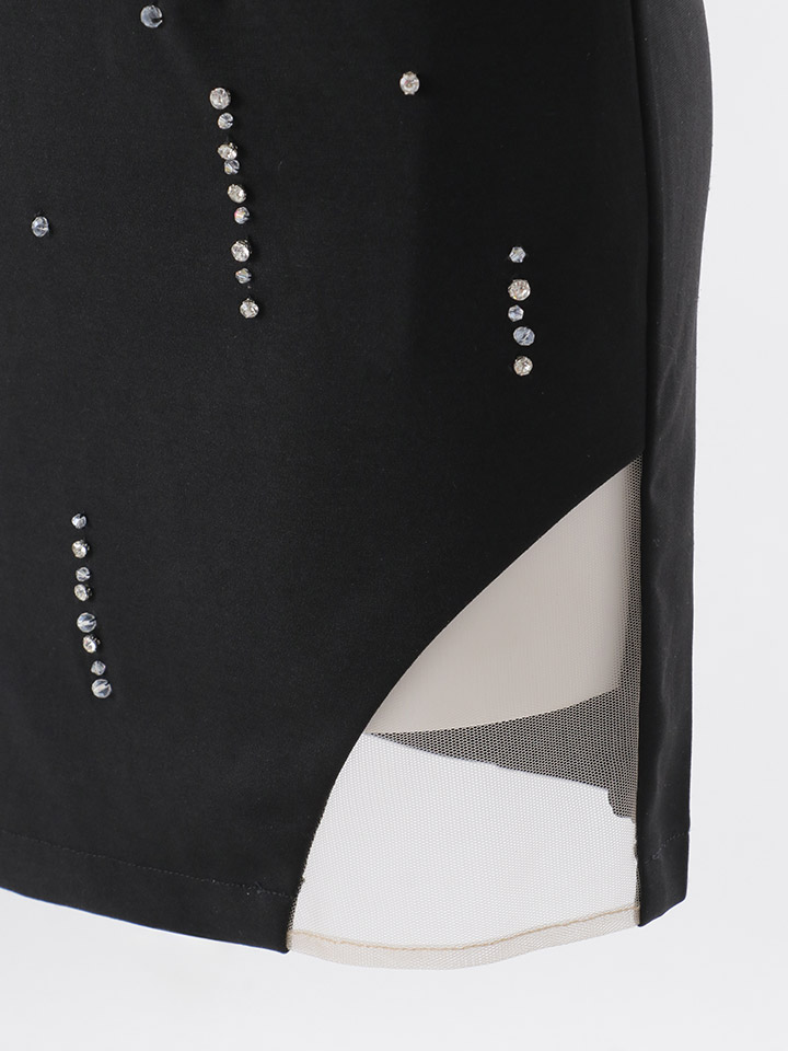 雨のような大粒ビジューがクールな印象を残す、オシャレデザインミニワンピドレス