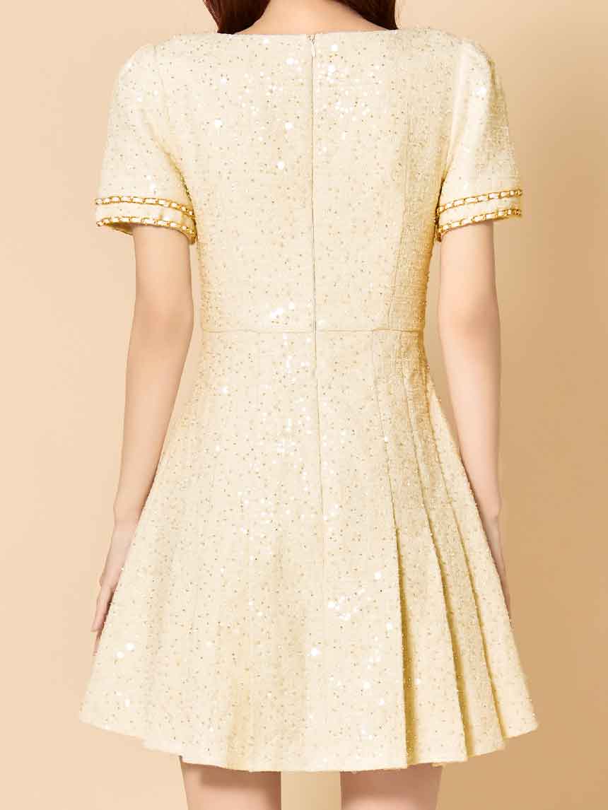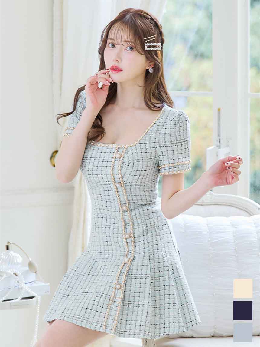 ブルーのチェックツイードが爽やかで可愛いミニドレス