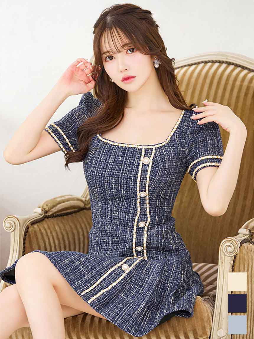【即日発送】新色登場!スクエアネックプリーツスカートミニドレス/キャバドレス【XS-XLサイズ/3カラー】[HC02-X] 【SB】dzw