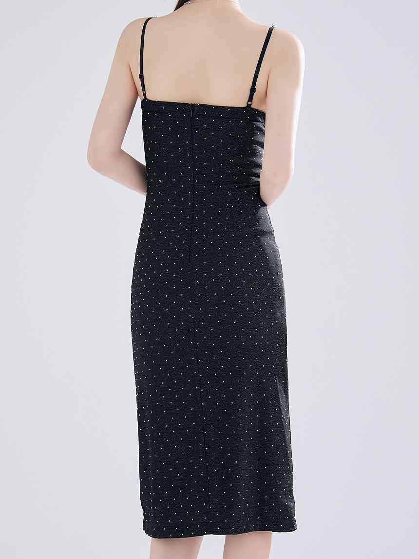 #ブラック #ネクスト銀座 ゆめ #ミディアム丈ドレス #ストレッチ #ドット柄 ラメ(グリッター) #キャミ #谷間見せ(魅せ) #背中見せ(魅せ) #タイト #スリットあり #上品・華やか・お姉さん系