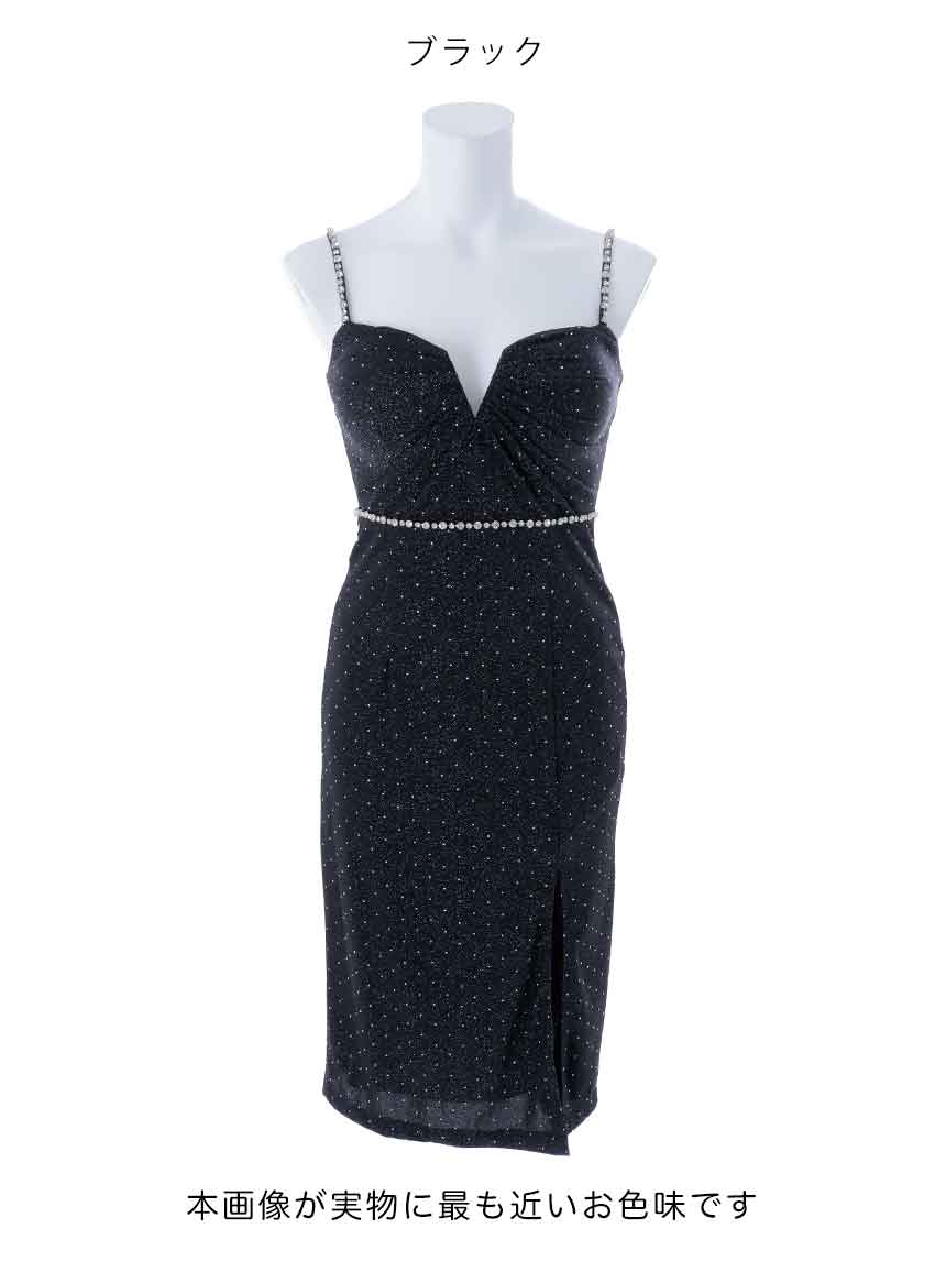 ラメスタッズドットスリットミディアムドレス/キャバドレス【XS-Lサイズ/1カラー】[OF03] 【YN】dzwFV