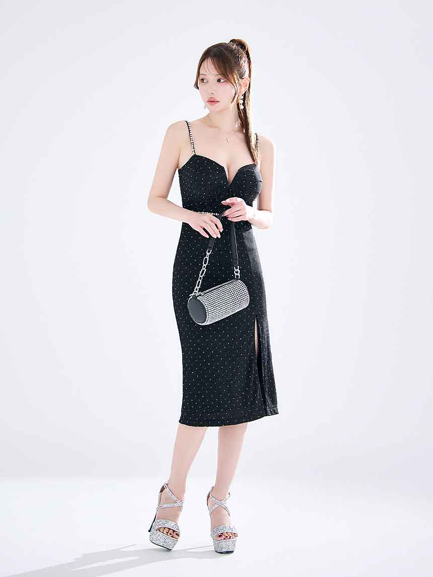 ラメスタッズドットスリットミディアムドレス/キャバドレス【XS-Lサイズ/1カラー】[OF03] 【YN】dzwFV [5671YNdzwFV250718-1]