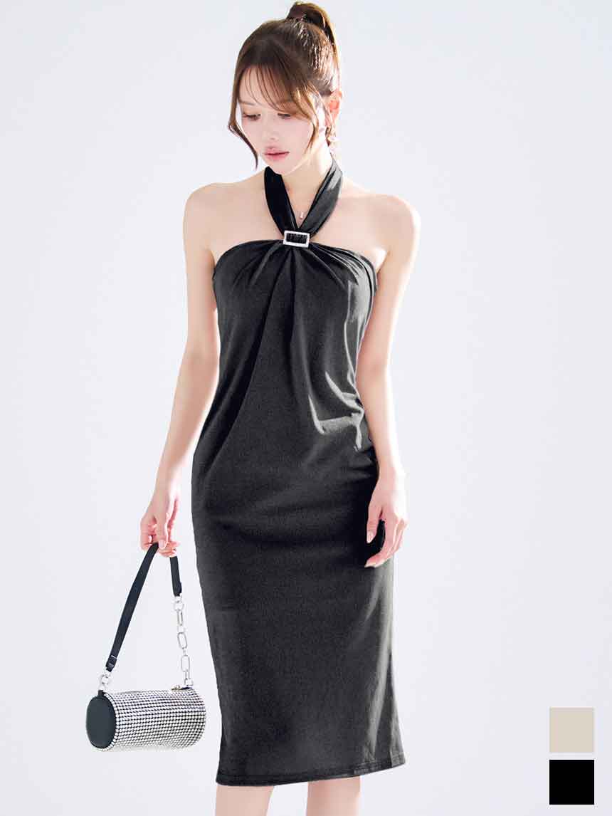 ホルターネックラメミディアムドレス/キャバドレス【S-Lサイズ/2カラー】[OF03B] 【IM】dzw [J-954IMdzw-250718-2]