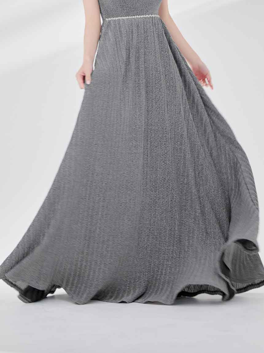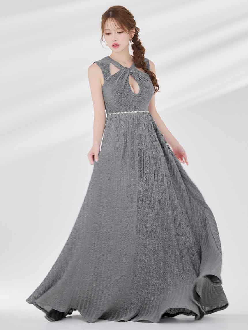 ラメたっぷりのキラキラドレスで視線を集めること間違いなしの上品ロングドレス