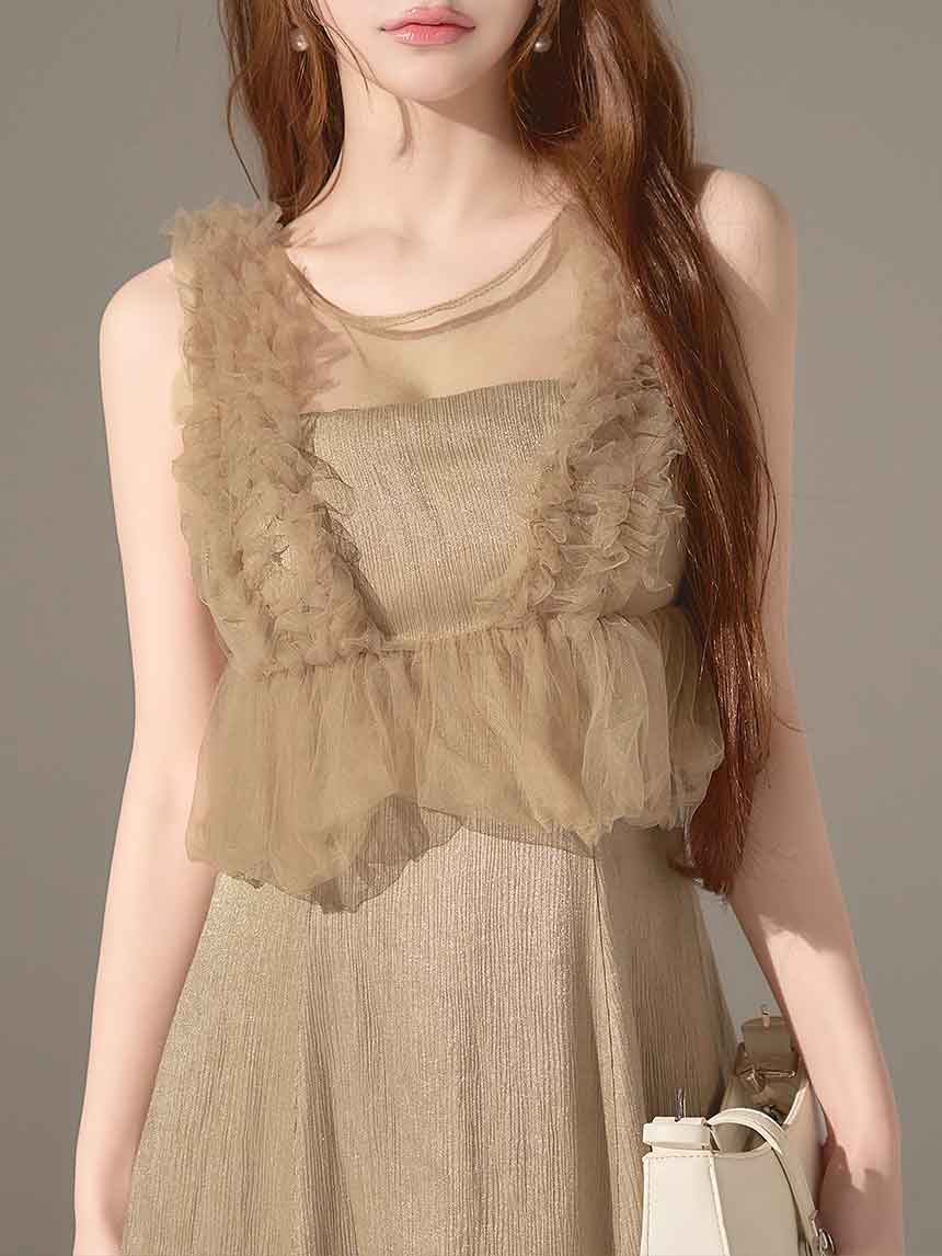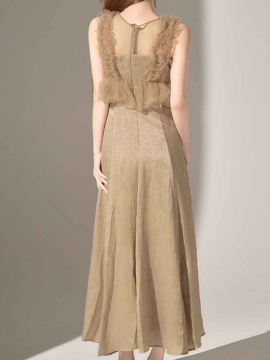 #ベージュ #グレー #ももか着用 #ネクスト銀座 ゆめ #ミディアム丈ドレス #ワンピースドレス #チュール #無地 #ノースリーブ #Aライン・フレアスカート #上品・華やか・お姉さん系