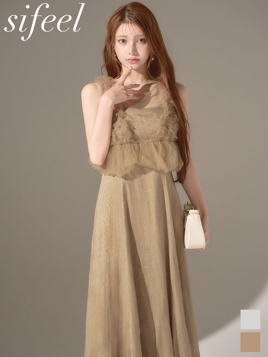 送料無料!【sifeel】ウエストチュールミディアムドレス/キャバドレス【S-Lサイズ/2カラー】[OF03] 【YN】dzwvLD【一部予約商品/12月中旬発送予定】 [5672YNdzwvLD-250728-1]