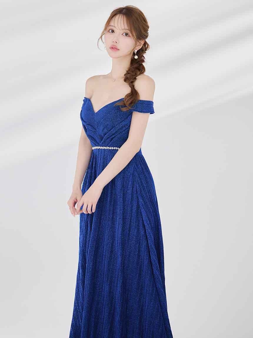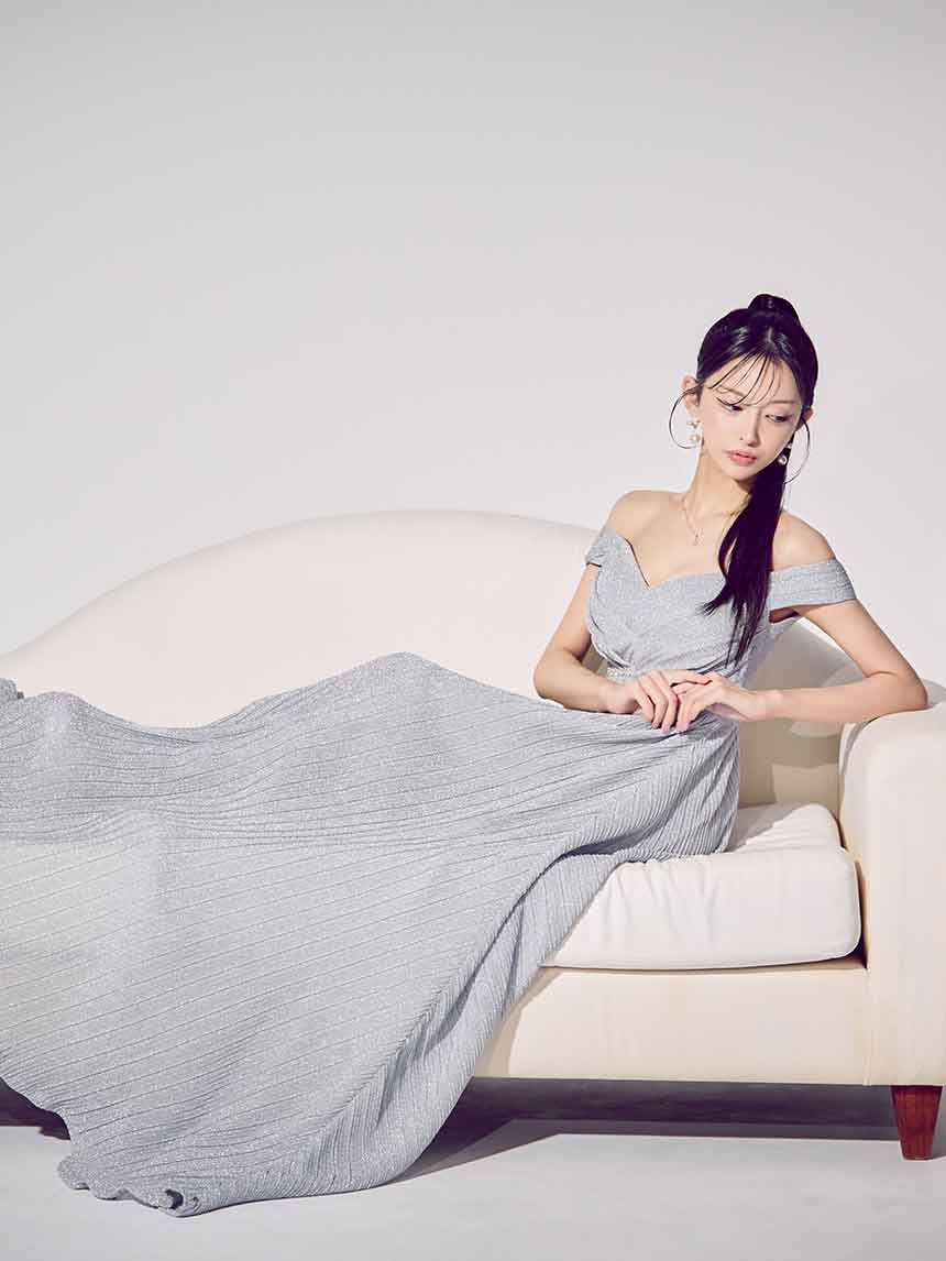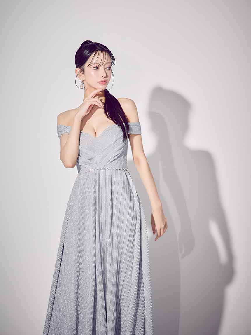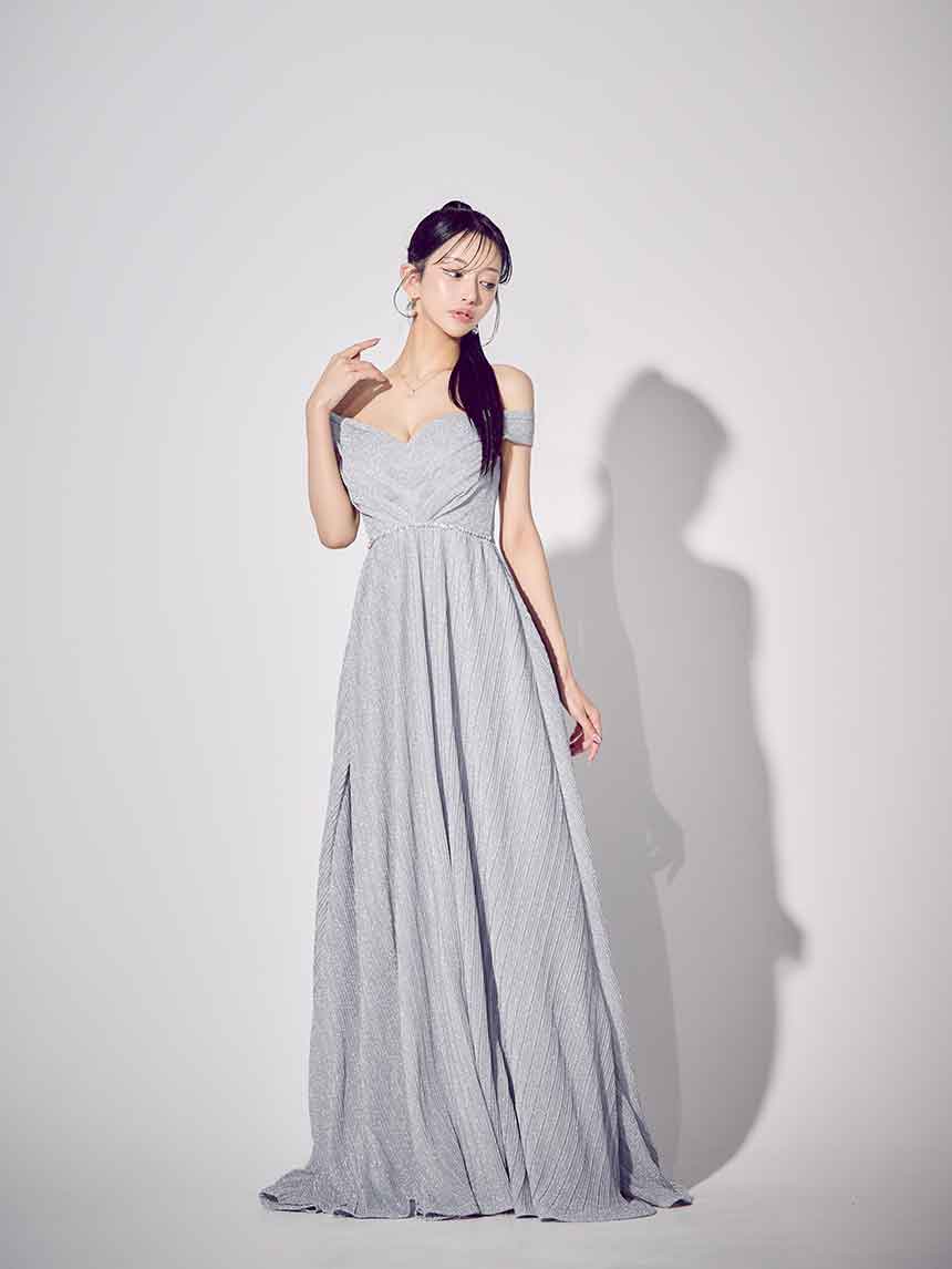 ラメオフショルプリーツロングドレス/キャバドレス【S-Mサイズ/2カラー】[OF03B] 【IM】 [J-955IM-250723-2]