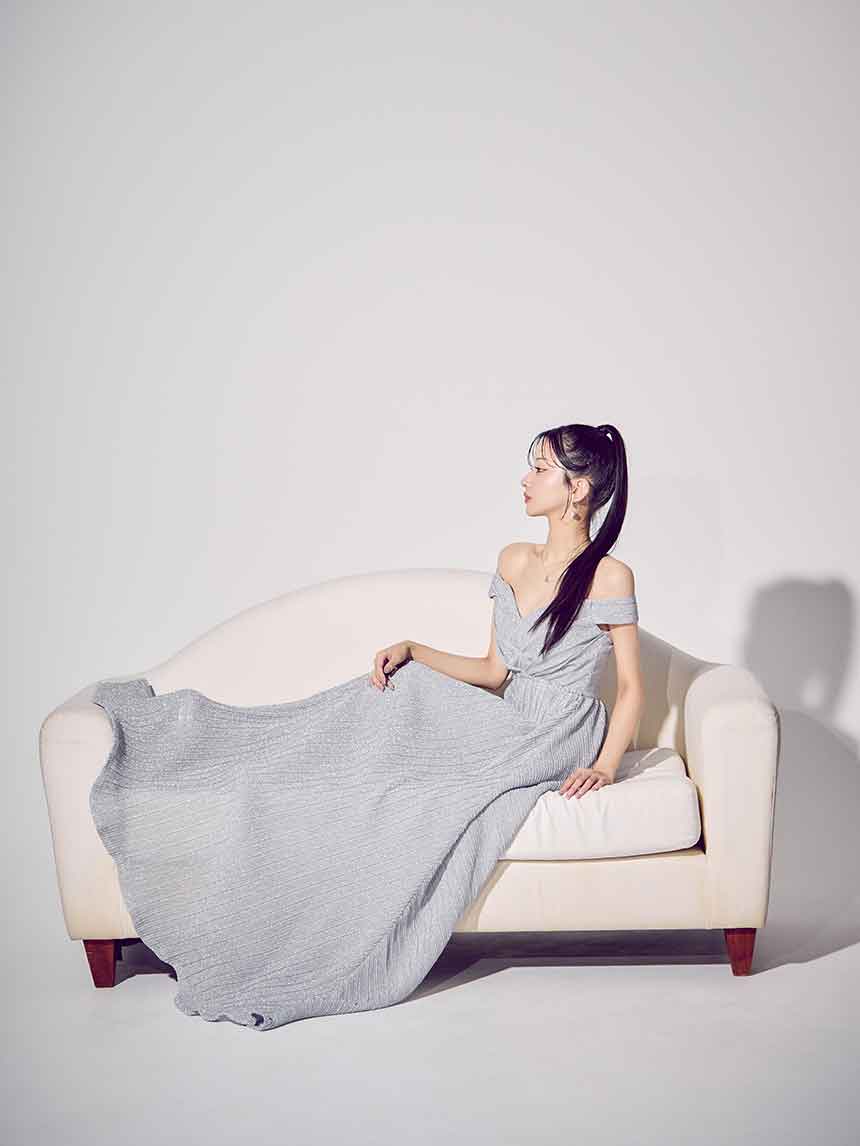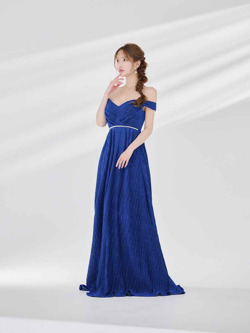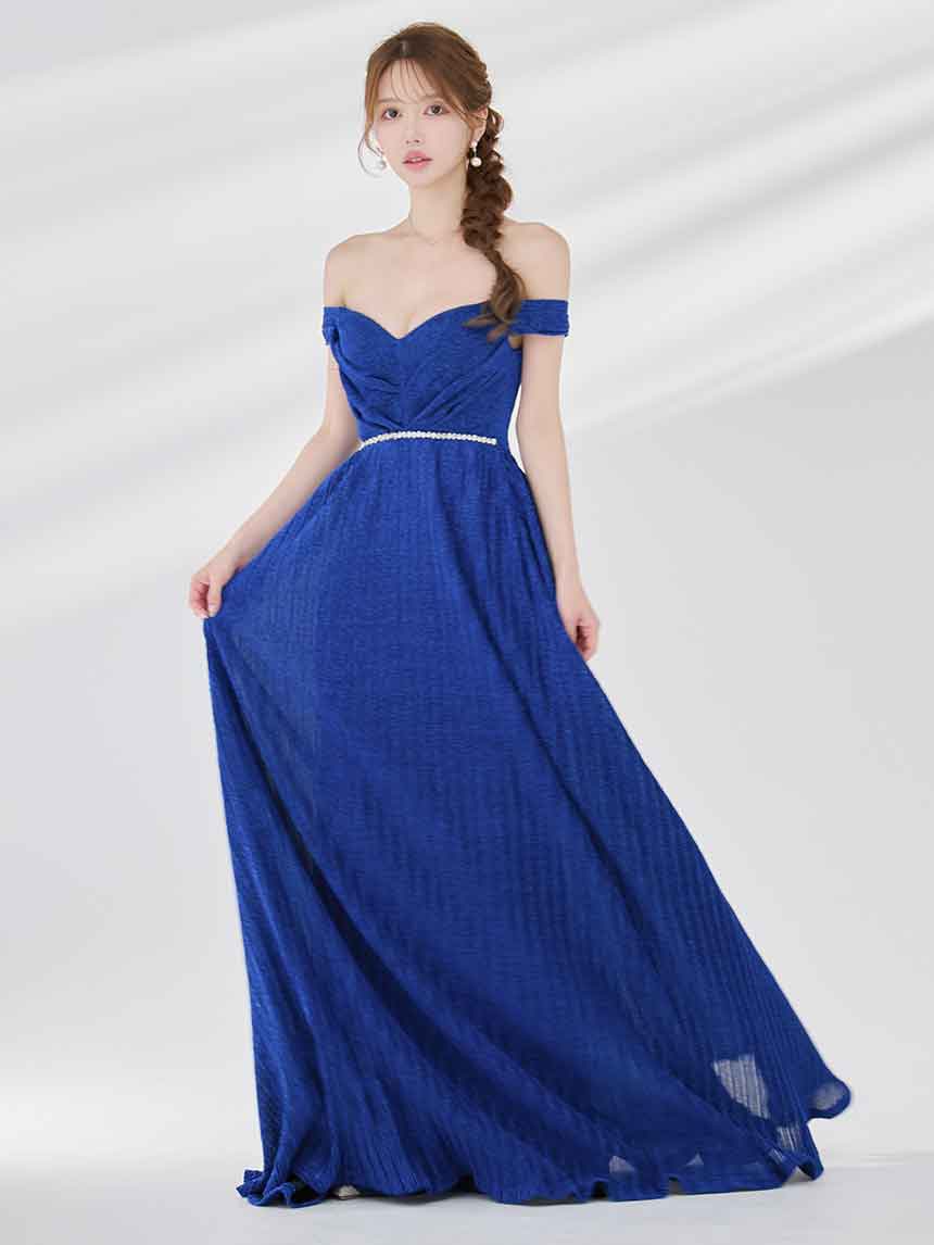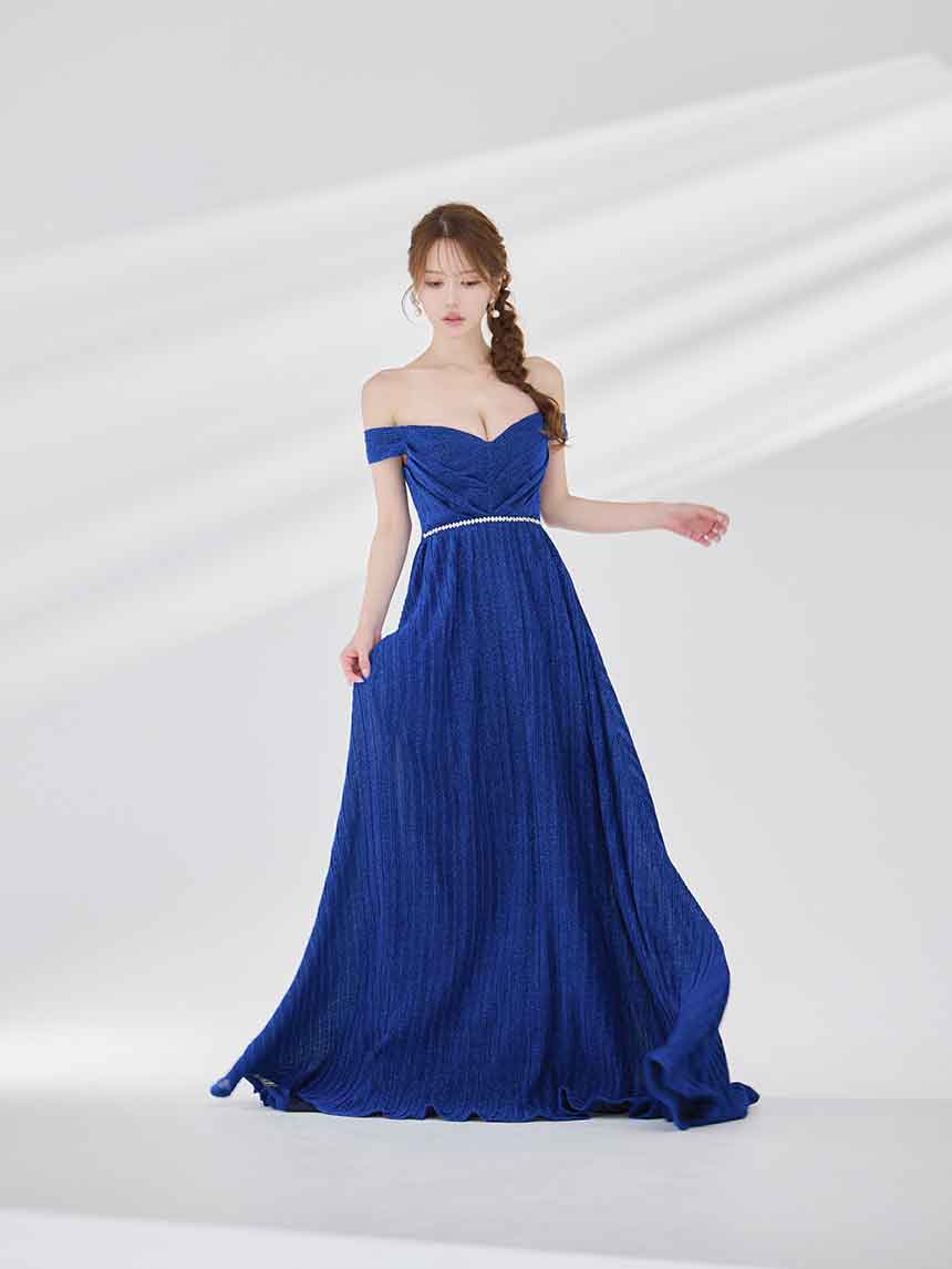 ラメオフショルプリーツロングドレス/キャバドレス【S-Mサイズ/2カラー】[OF03B] 【IM】 [J-955IM-250723-2]