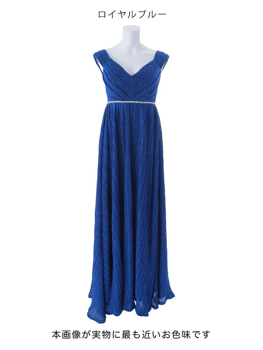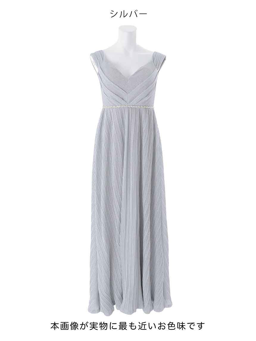 ラメたっぷりのキラキラドレスで視線を集めること間違いなしの上品ロングドレス