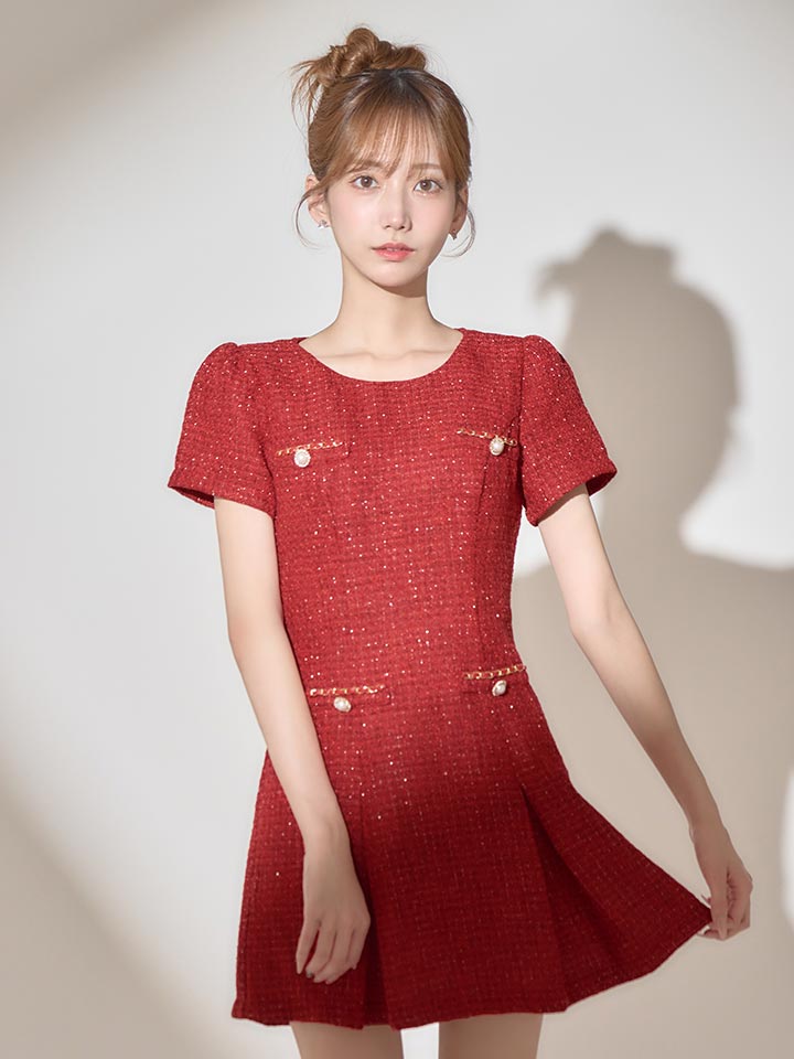 新色登場!プリーツスカートツイードワンピースドレス/キャバドレス【XS-Lサイズ/4カラー】[OF01A] 【SB】dzwu [AN3260SBdzwu-250804-2]