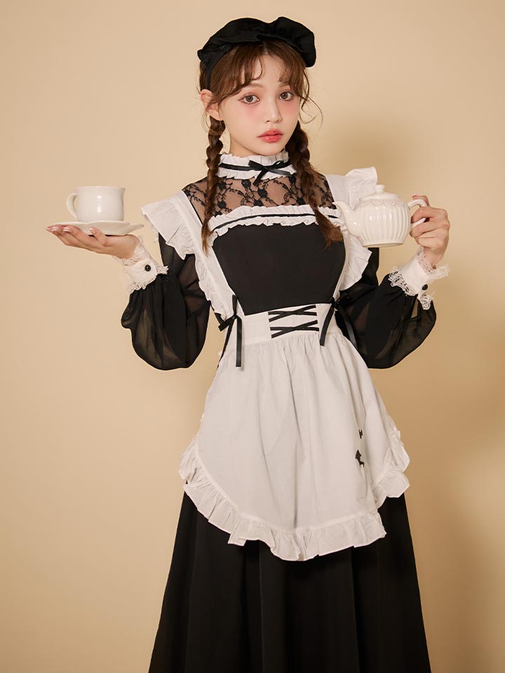 メイド めいど ワンピース かわいい 制服 コスプレ ミディアムスカート 長袖 ロングスリーブ 仕事服 ミディアム丈 ミモレ丈 露出が少ない ロングスカート