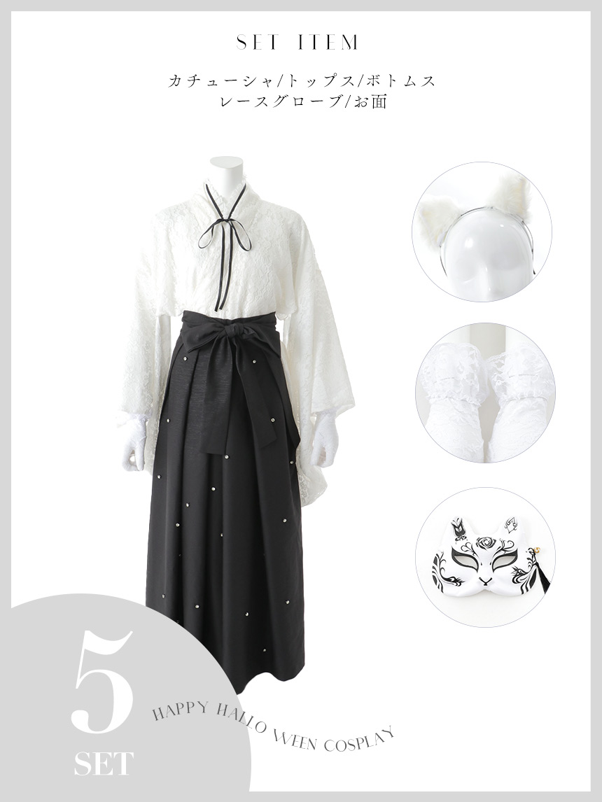 【即日発送】【送料無料!】【ハロウィン】猫巫女ビジュー袴【コスプレ6点セット】【Fサイズ/1カラー】[HC03] [HW-239-SB-dzc-WxB-25PO]