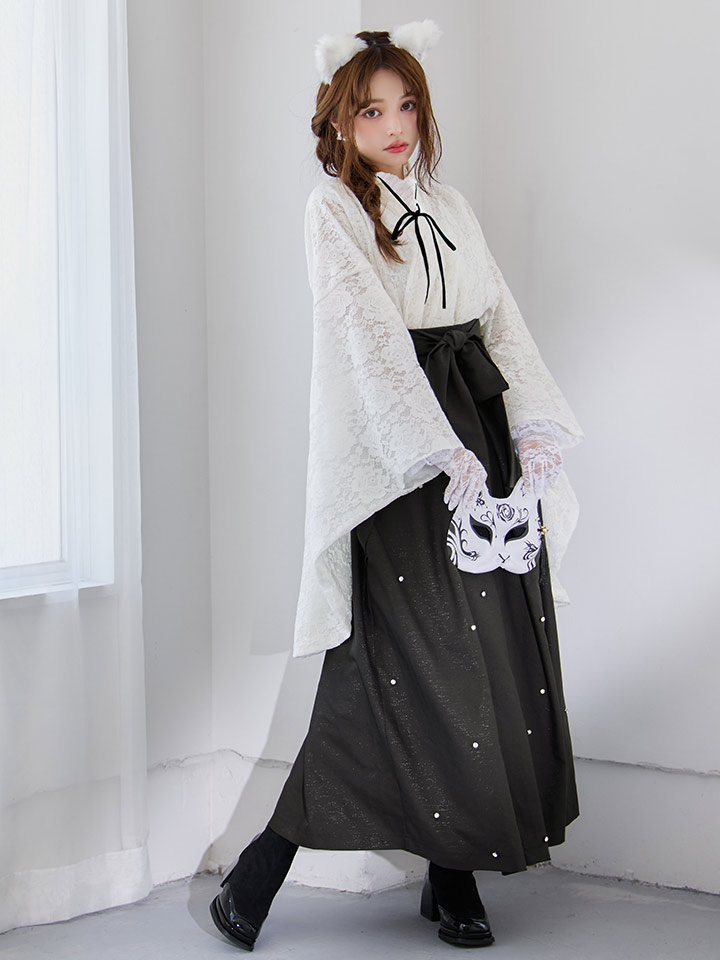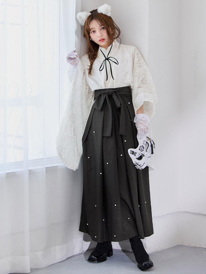 繊細なレースとビジュー付き袴でロマンティックに着こなして。
