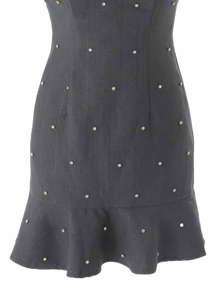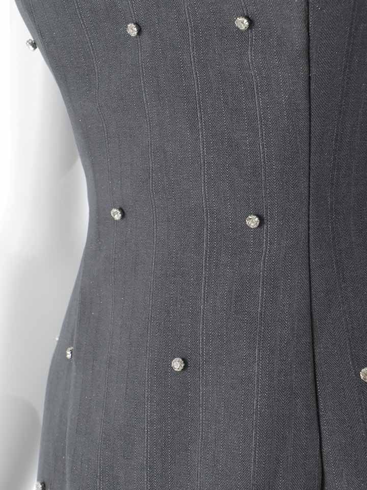 厚手の高級感あるツイード生地に大粒ビジューが映えるガーリー×モード大人ワンピドレス