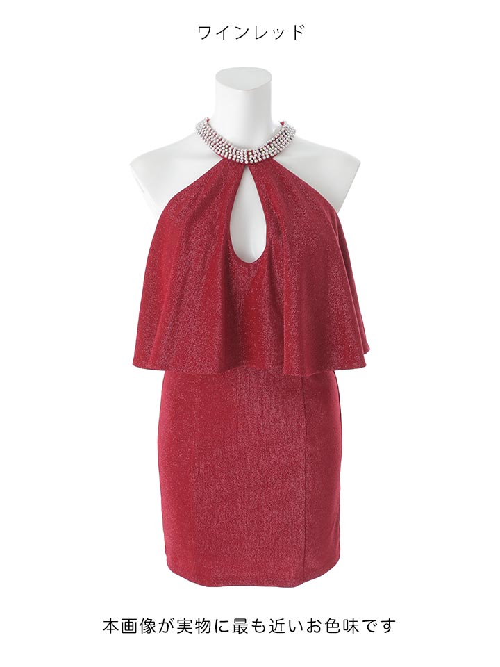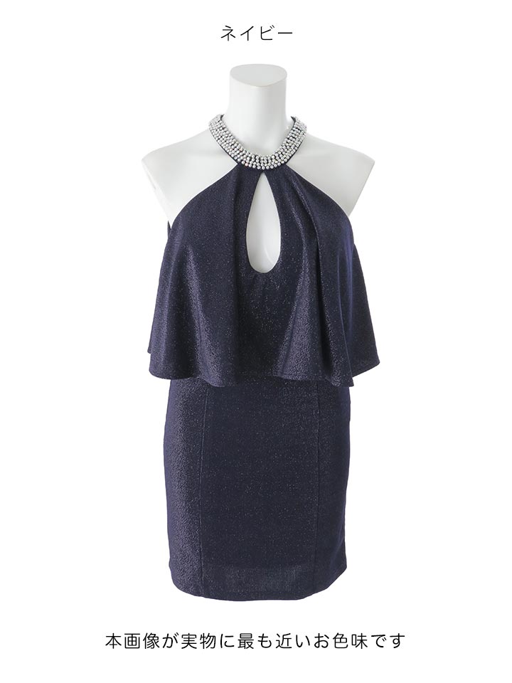 ビジューネックウエストフリルラメタイトミニドレス/キャバドレス【XS-Mサイズ/2カラー】[OF03B] 【IM】dzw