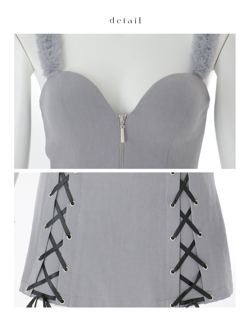 程よい肌みせと編み上げでちょっぴりハードな印象に。