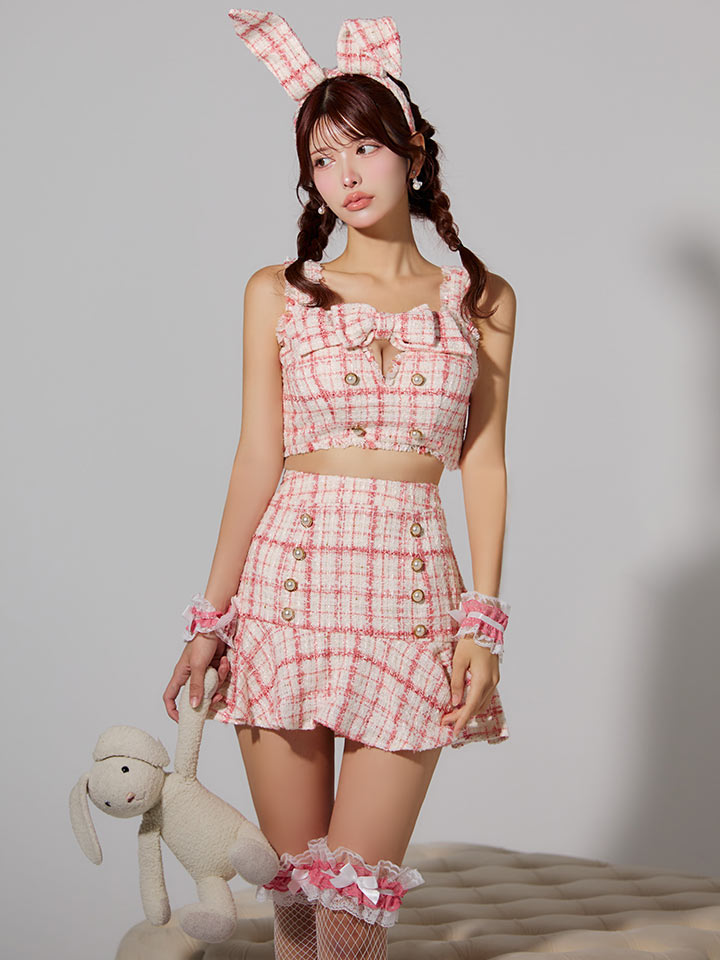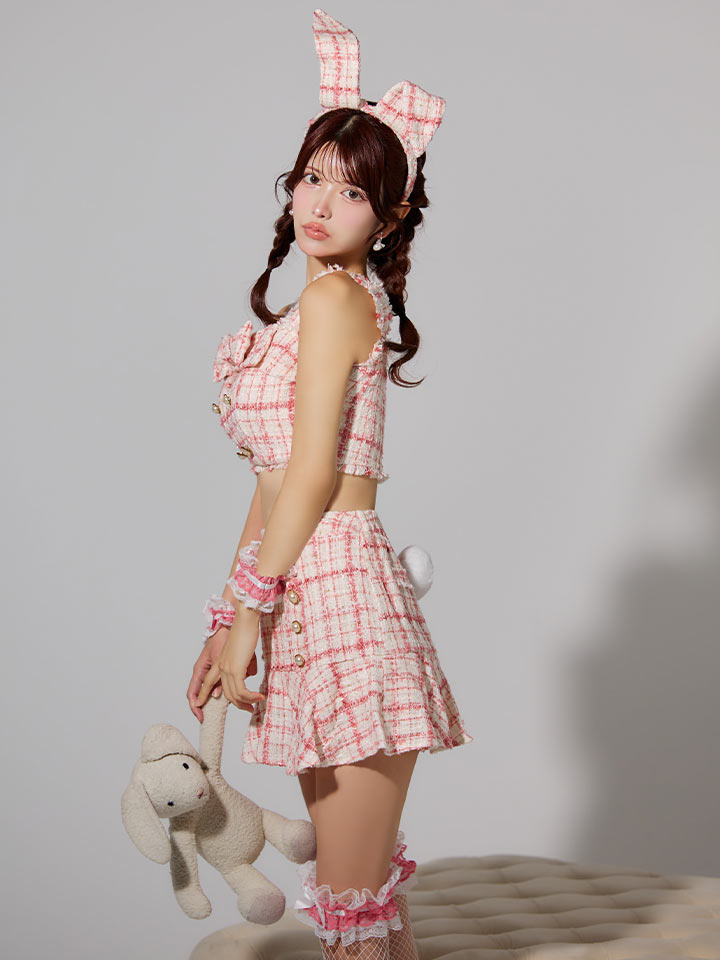 【SALE!!】【即日発送】【ハロウィン】ツイードバニーリボンセットアップ(スカート)【コスプレ6点セット】【XS-Mサイズ/2カラー】[HC03]