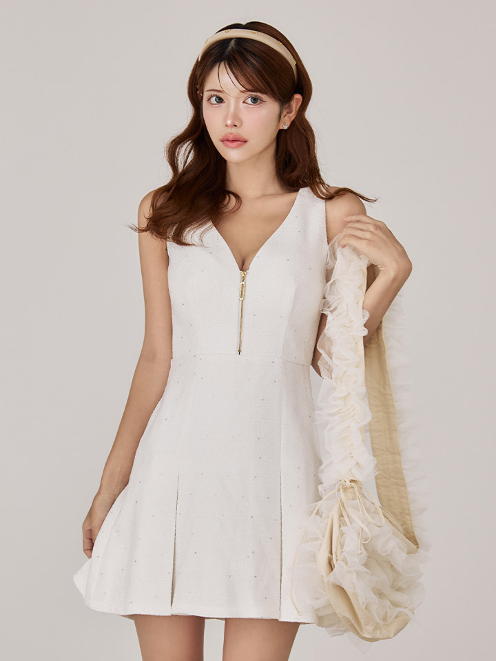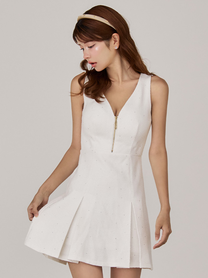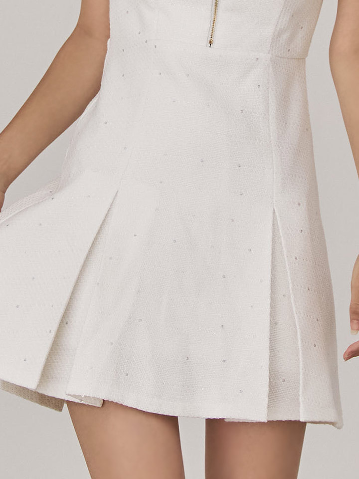ノースリーブプリーツフレアツイードミニドレス/キャバドレス【XS-Mサイズ/1カラー】[OF03B] 【IM】 [J-962IM-250822-1]
