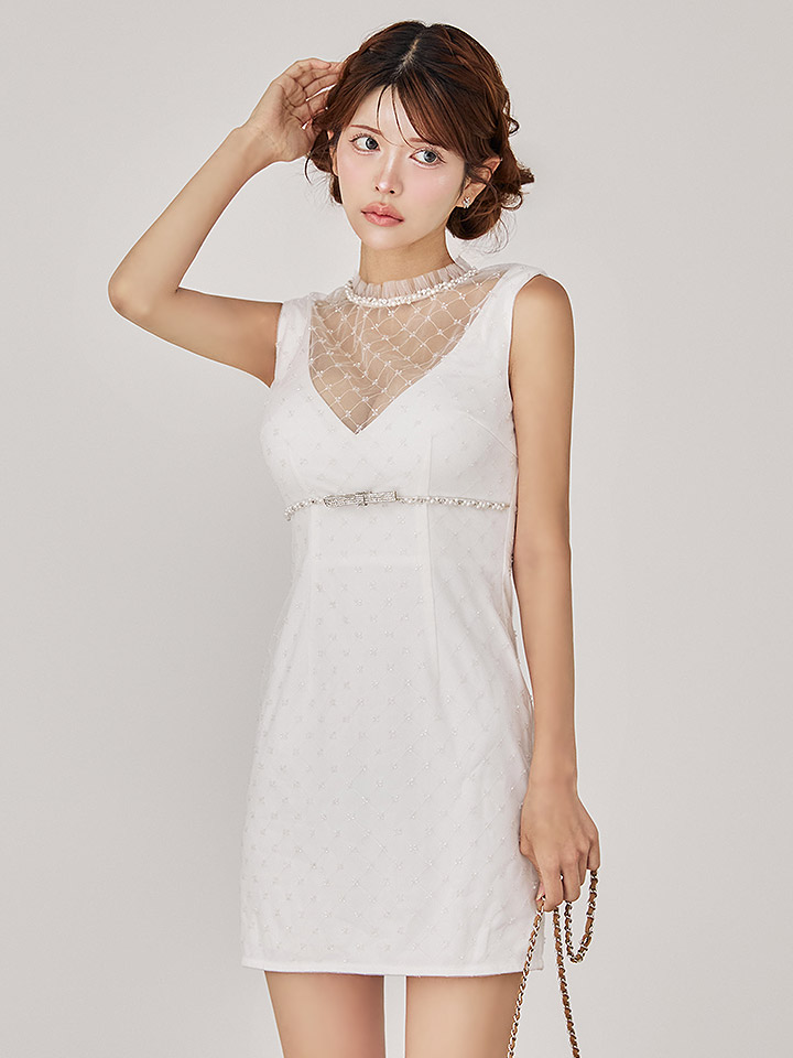 #ホワイト #ブラック #まりん着用 #ももか着用 #ミニドレス/ミニ丈 #レース #チュール #チェック柄 #ノースリーブ #谷間見せ(魅せ) #背中見せ(魅せ) #タイト #スイート・可愛い(かわいい)系 #JEWELSトレンド