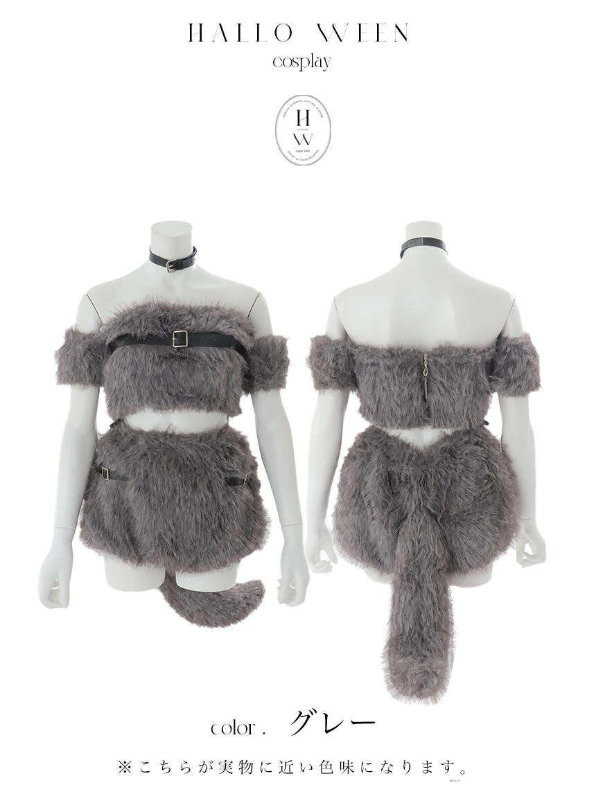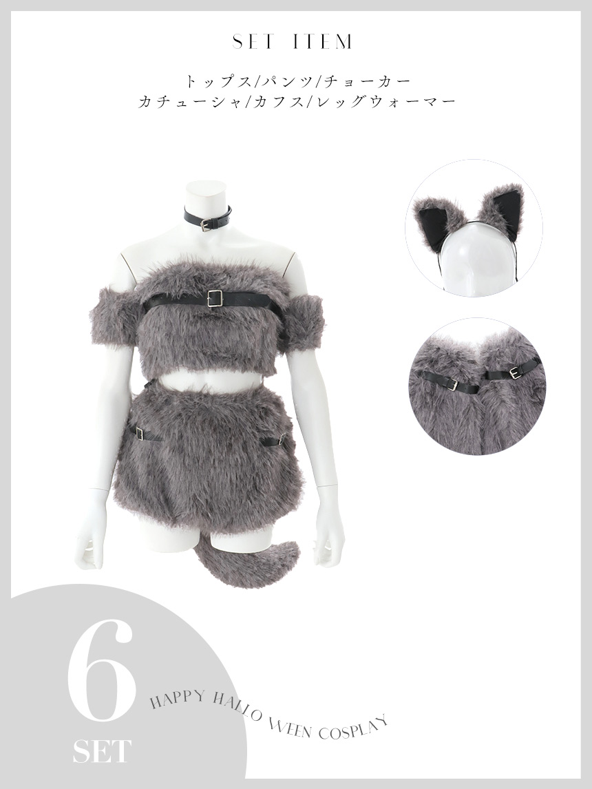 【即日発送】【ハロウィン】ファーウルフ/ 狼 オオカミセットアップ【コスプレ6点セット】【XS-Mサイズ/1カラー】[HC03] [HW-224-SB-dzk-GY-25PO]