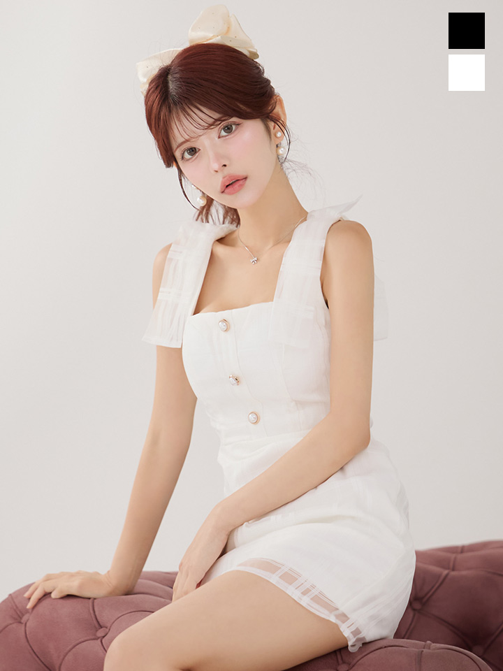 チュールレイヤードリボンノースリーブミニドレス/キャバドレス【XS-Lサイズ/2カラー】[HC02-X] 【SB】 [3022SB-250826-1]