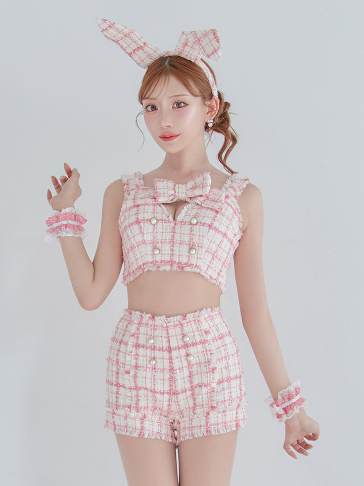 【SALE!!】【即日発送】【ハロウィン】ツイードバニーリボンセットアップ(パンツ)【コスプレ6点セット】 【XS-Mサイズ/2カラー】[HC03]