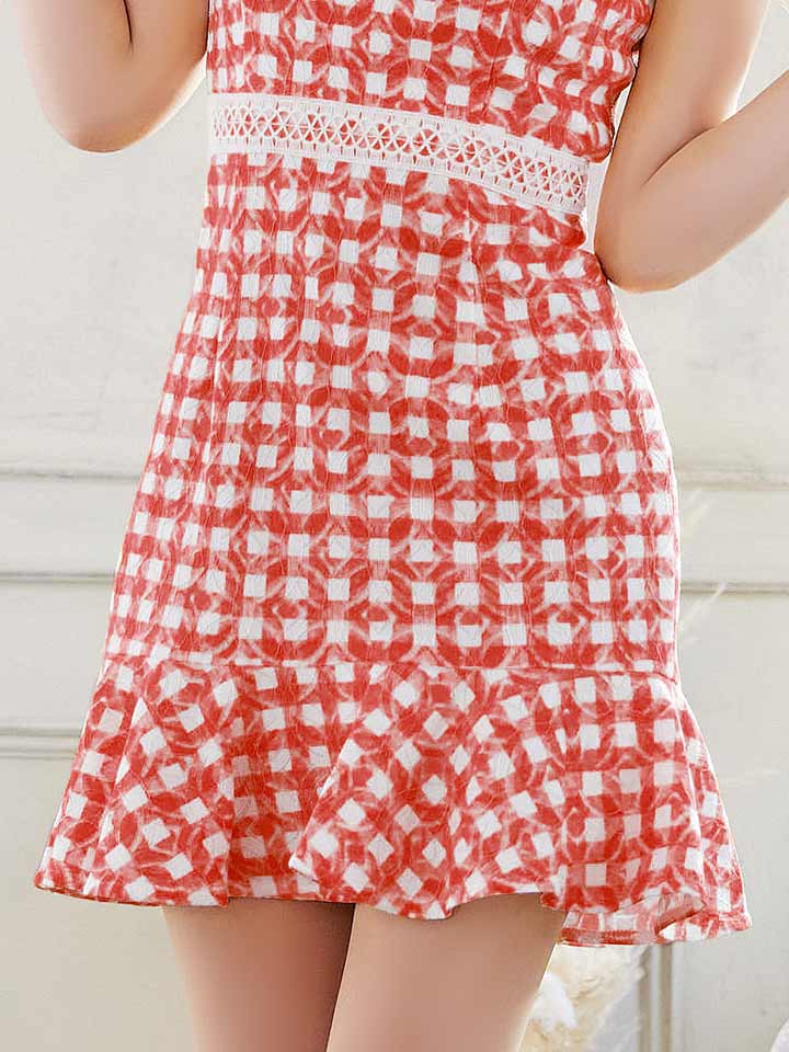 ギンガムチェック柄がガーリーなミニドレス。