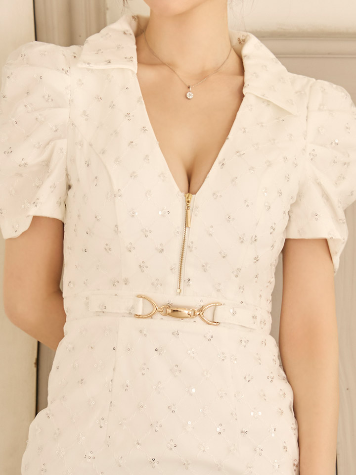パフスリーブジップアップミニドレス/キャバドレス【XS-Lサイズ/2カラー】[OF01A] 【SB】dzw [3064SBdzw-250830-1]