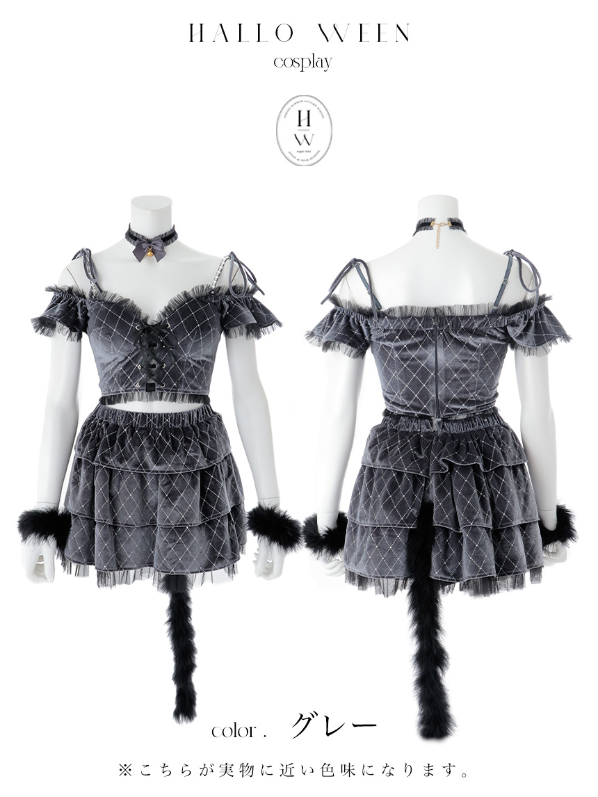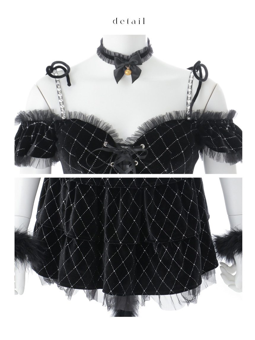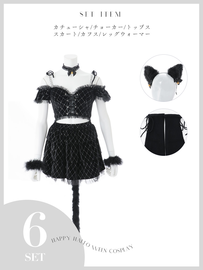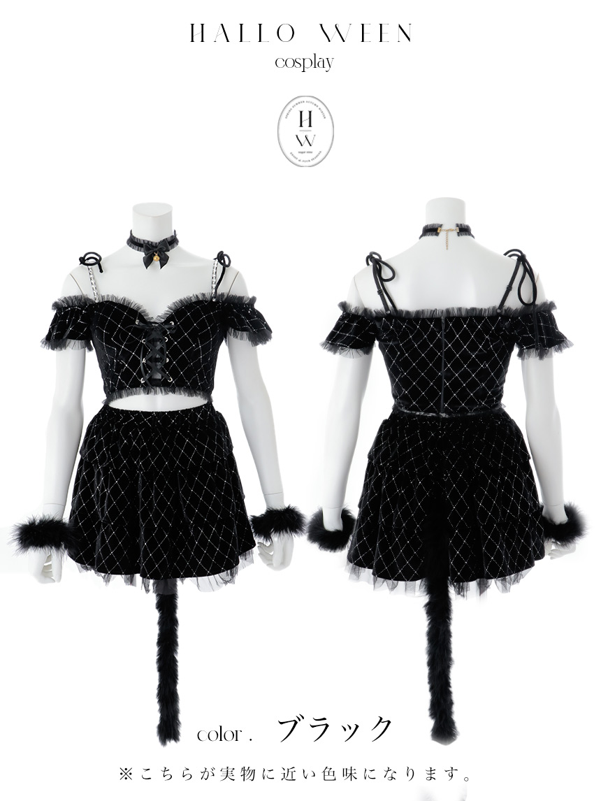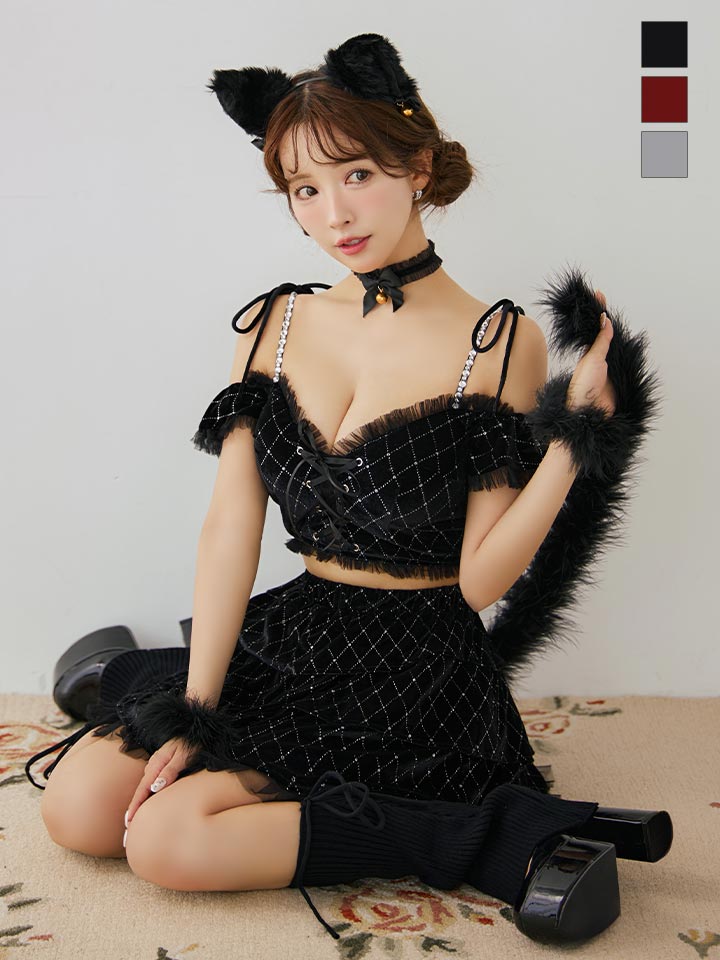 【即日発送】【ハロウィン】キャットオフショルビジューセットアップ【コスプレ6点セット】【XS-Lサイズ/3カラー】[HC03] [HW-211-YN-dzw-B-25RI]