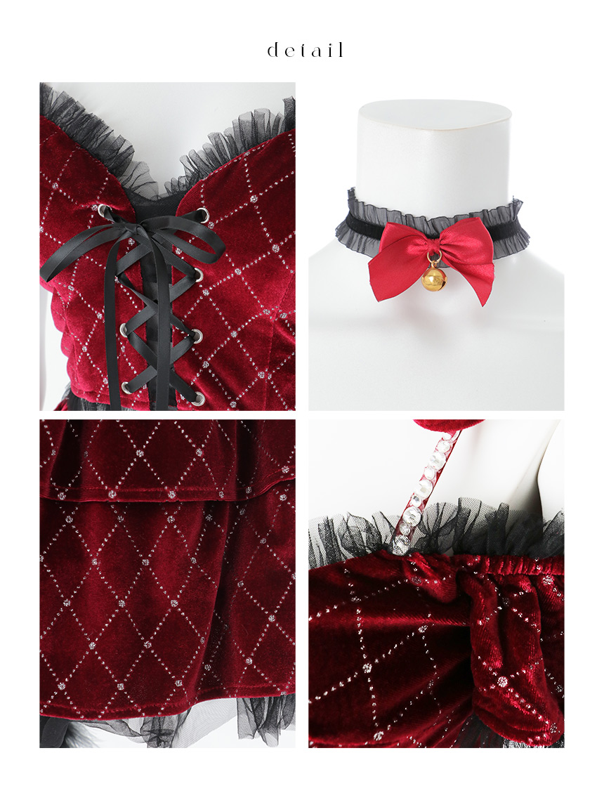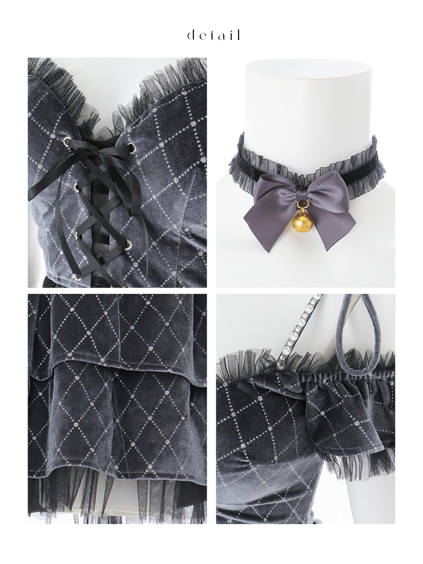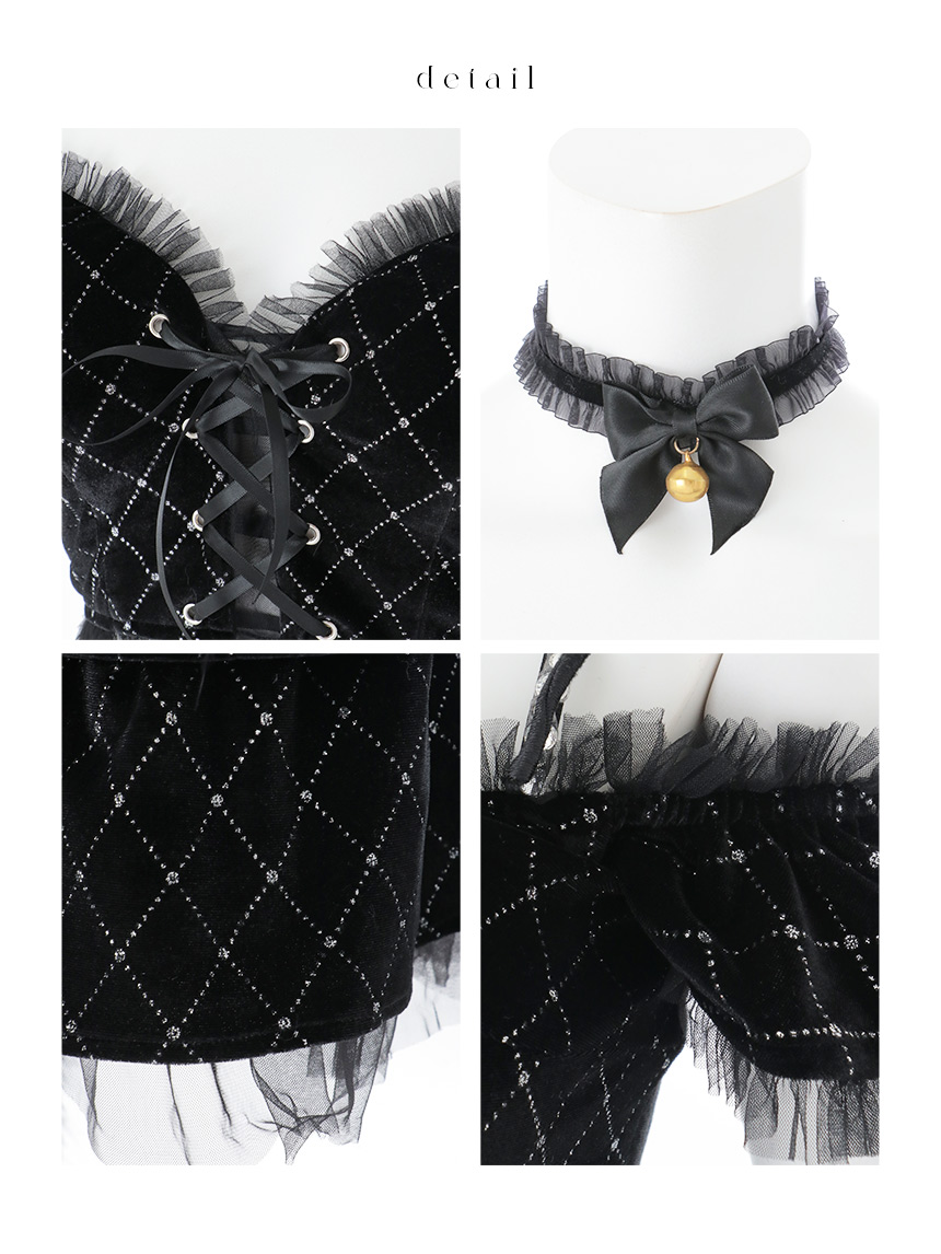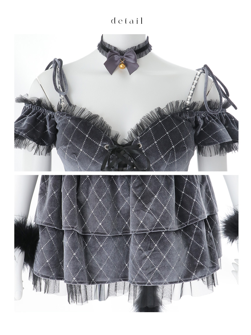 【即日発送】【ハロウィン】キャットオフショルビジューセットアップ【コスプレ6点セット】【XS-Lサイズ/3カラー】[HC03] [HW-211-YN-dzw-B-25RI]