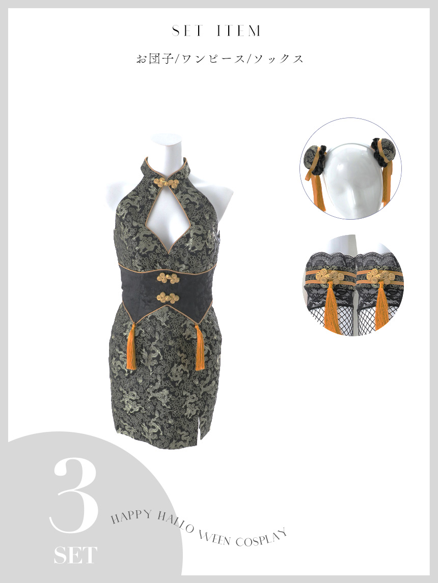 【即日発送】【ハロウィン】 アメスリコルセットチャイナ 【コスプレ3点セット】【XS-XLサイズ/1カラー】/ シャーリングドラゴン刺繍タイトチャイナ 【コスプレ4点セット】 【XS-Lサイズ/1カラー】 (SE01YN)[OF01] [HW-219-YN-dzw-BxR-HW-220-SB-dzw-B-25MARI]