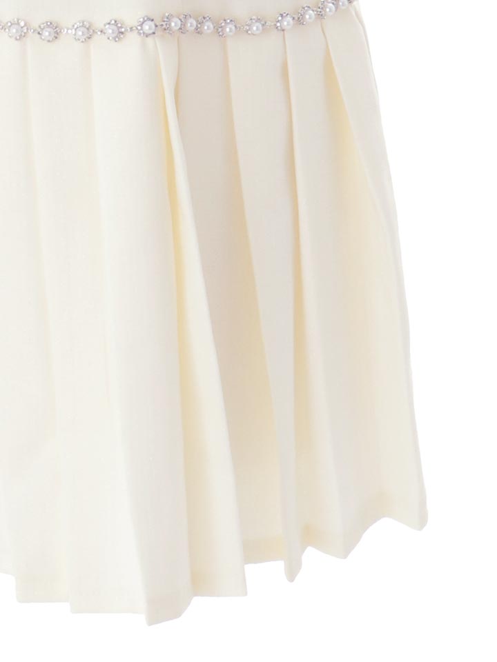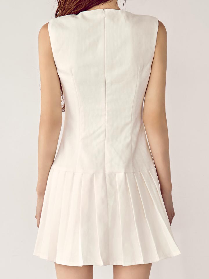 細かいプリーツスカートが揺れる、華やかで甘い印象のミニドレス。