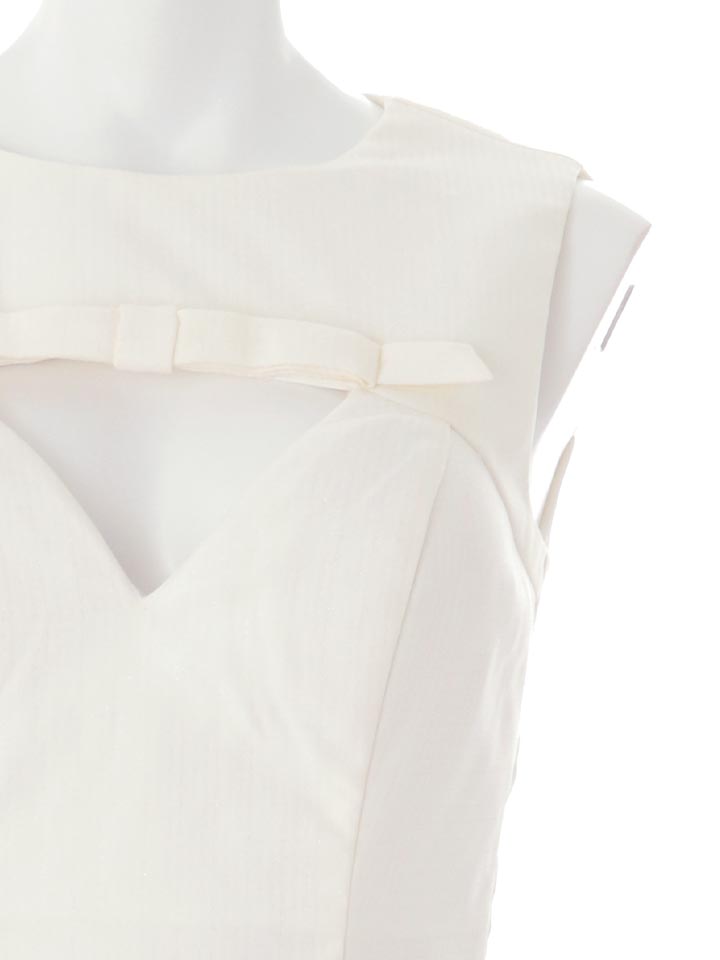 Vカットデザインでさりげなく谷間を見せ、ノースリーブで腕まわりをすっきり魅せます。