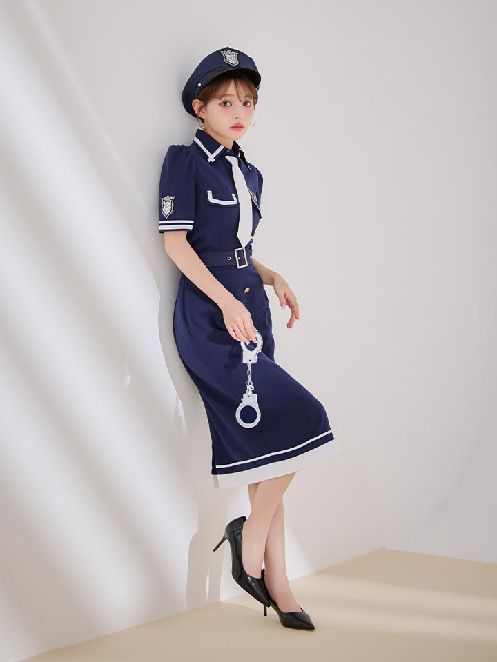 ポリス 警察 カッコいい かっこいい セクシー お仕事 おしごと 文化祭 体育祭 お揃いコーデ おそろいコーデ タイト ワンピース 仕事服 コスプレ ミディアム丈 ミモレ丈 露出が少ない ロングスカート