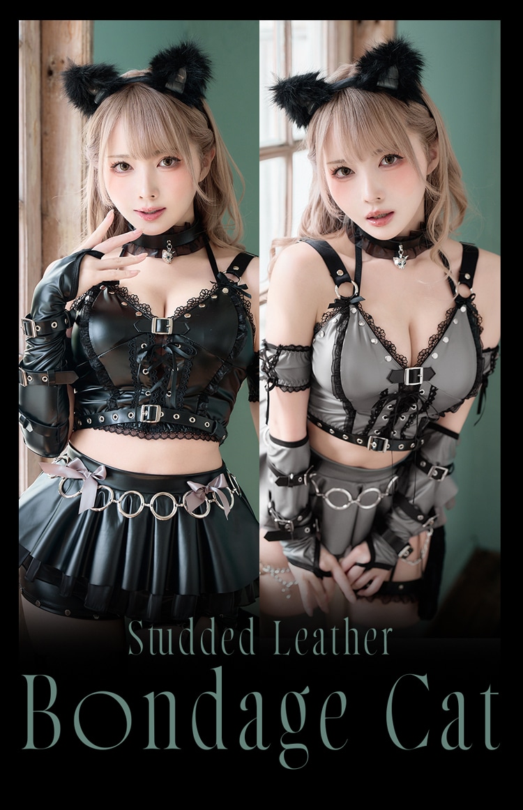 【即日発送】スタッズレザーボンテージキャット【マリームーン】【ハロウィンコスプレ13点セット】【フリーサイズ/2カラー】[OF04-Bg]