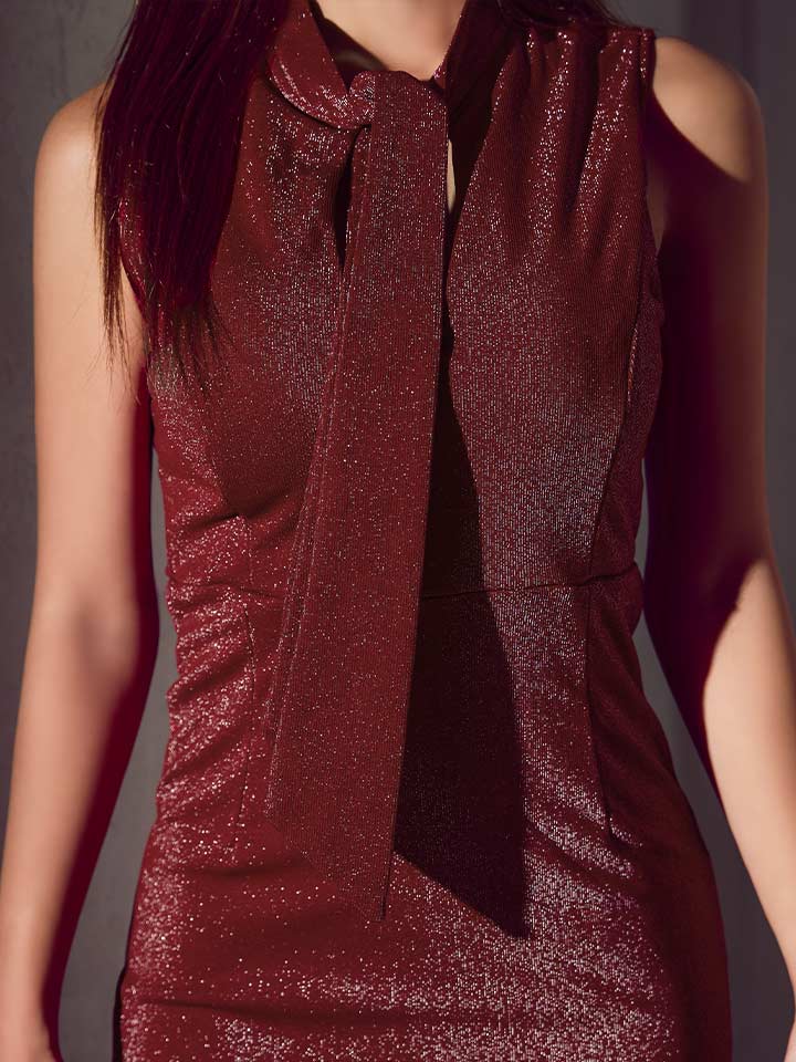 ストレッチの効いたラメ生地で華やかさと着心地を両立したミディアム丈ワンピース。