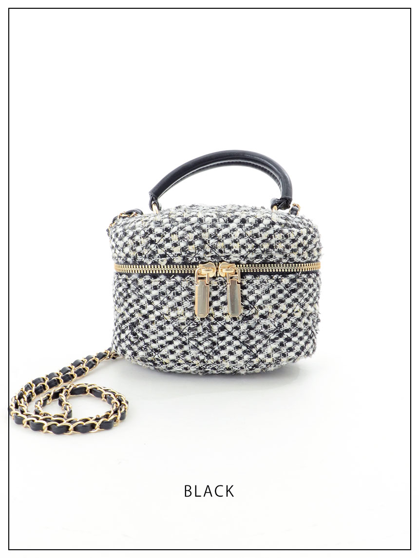 【バッグ】チェーンツイードバニティバッグ【Fサイズ/2カラー】[OF03] 【IM】