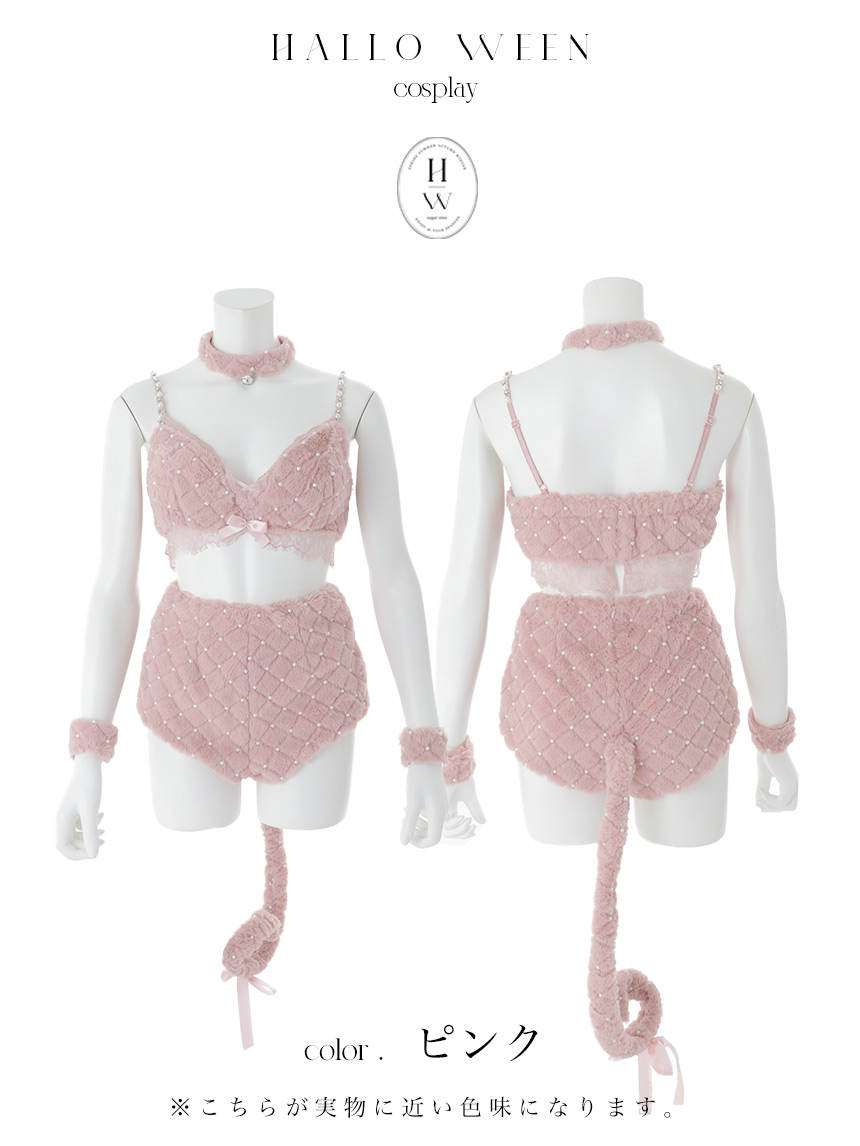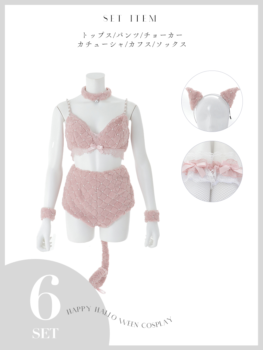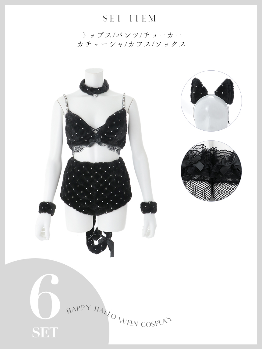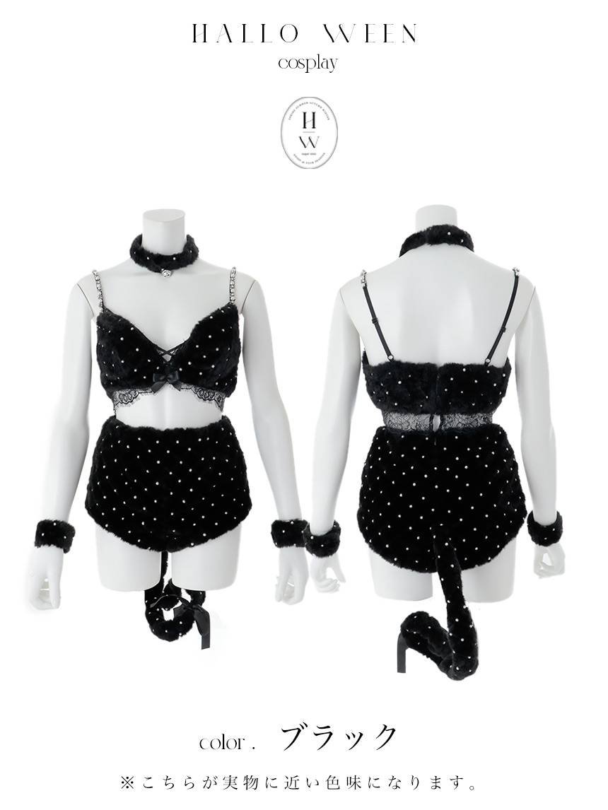 【即日発送】【ハロウィン】ビジューファーキャットパンツセットアップ【コスプレ6点セット】【XS-Lサイズ/3カラー】[OF04] [HW-216-YN-dzk-P-25MM]