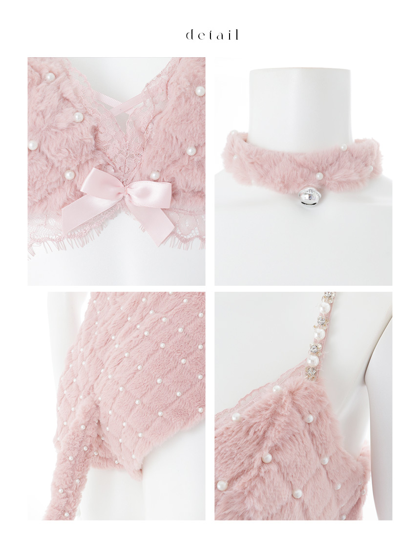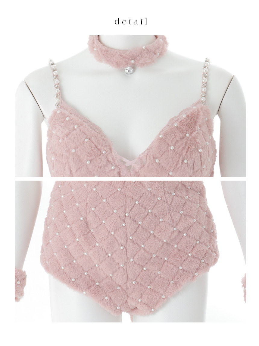 ピンク 桃色 ランジェリー セットアップ 胸盛り ふわふわ パール