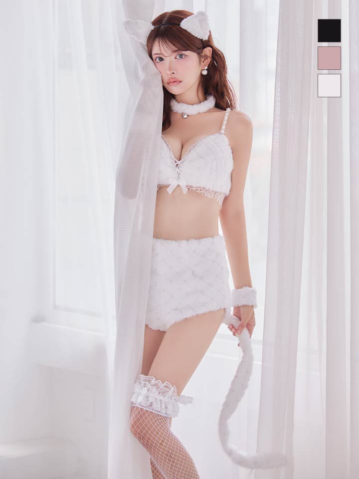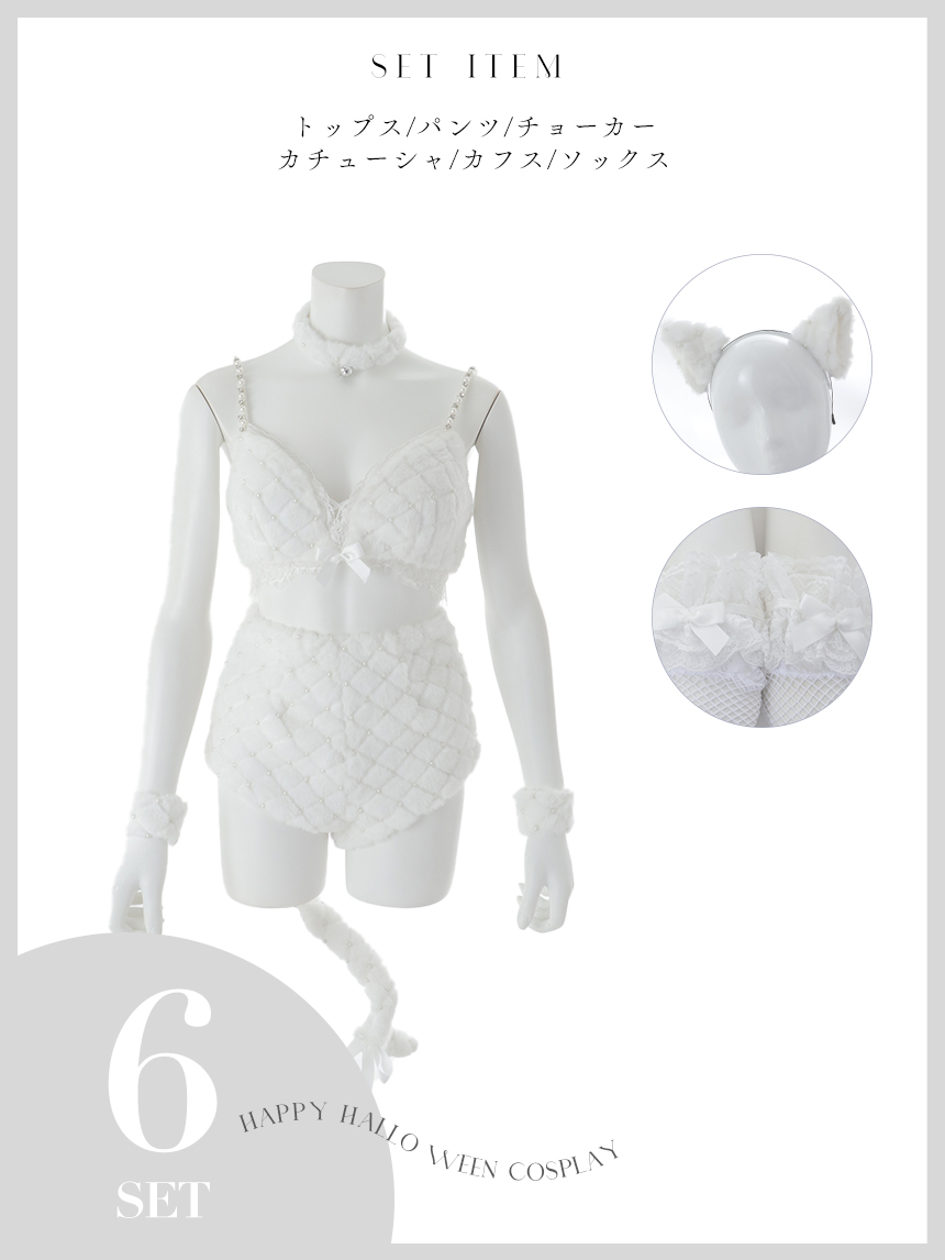 パールを散りばめた大人可愛い猫コスプレ。