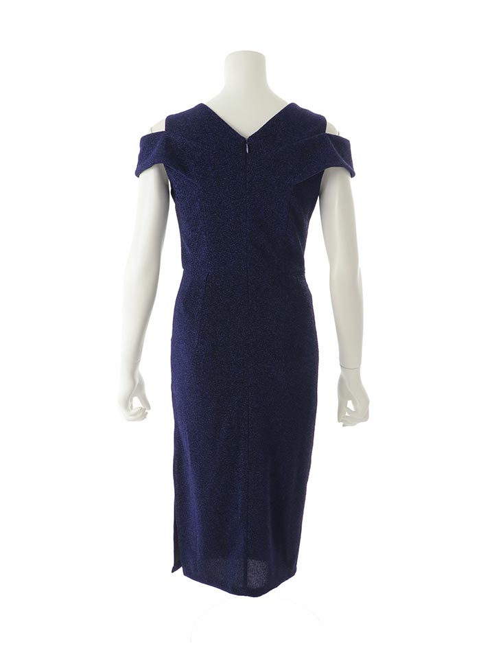 ストレッチの効いたラメ生地で華やかさと着心地を両立したミディアム丈ワンピース。