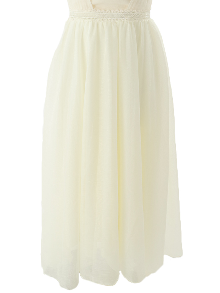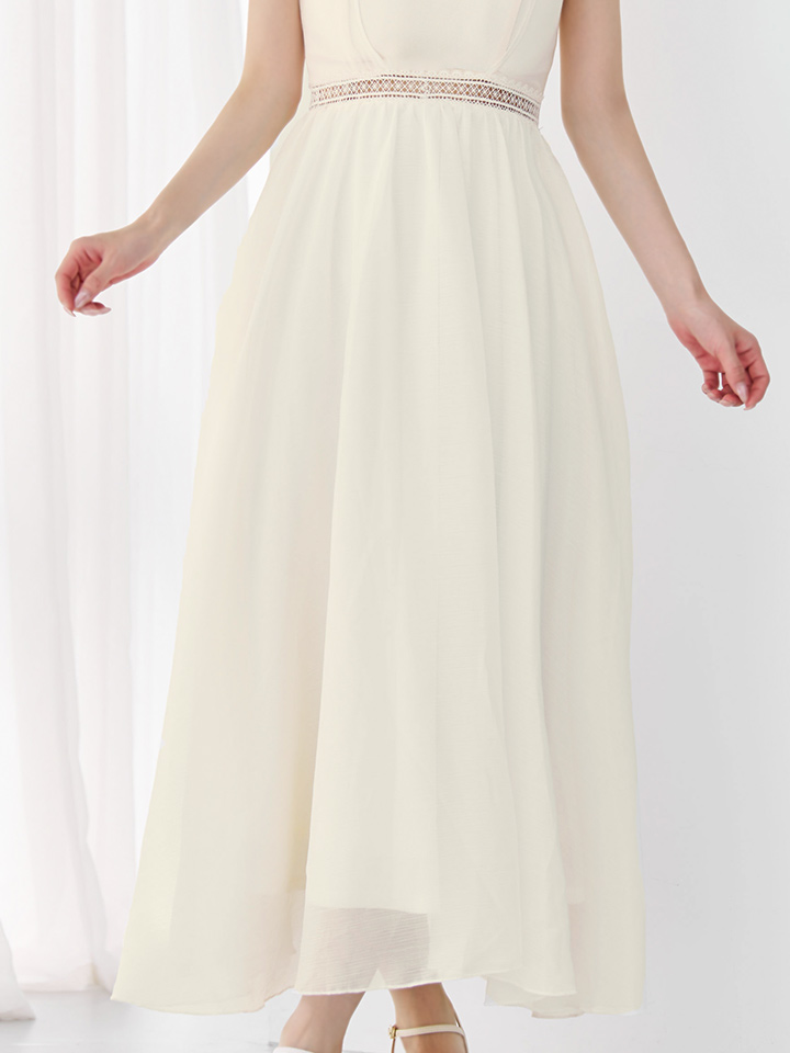ふんわり広がるシフォンのフレアスカートが優雅に揺れるロング丈ワンピース。