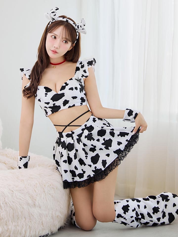 アニマル 動物 カウ 牛 うし セクシー コスプレ セットアップ 白x黒 ホワイトxブラック