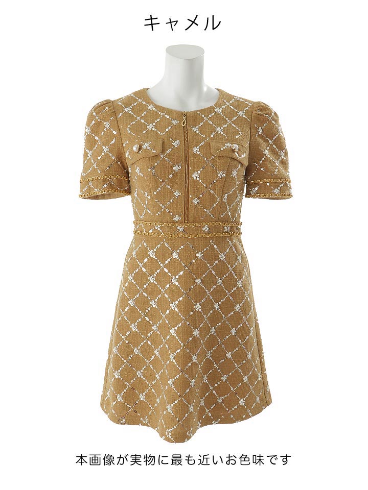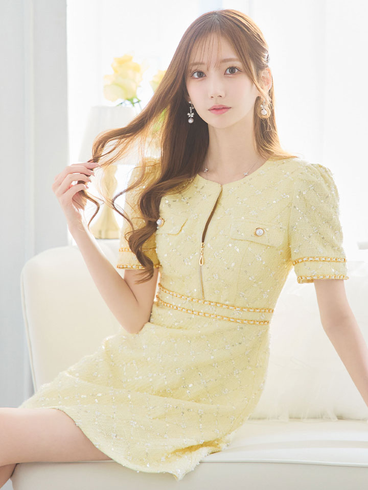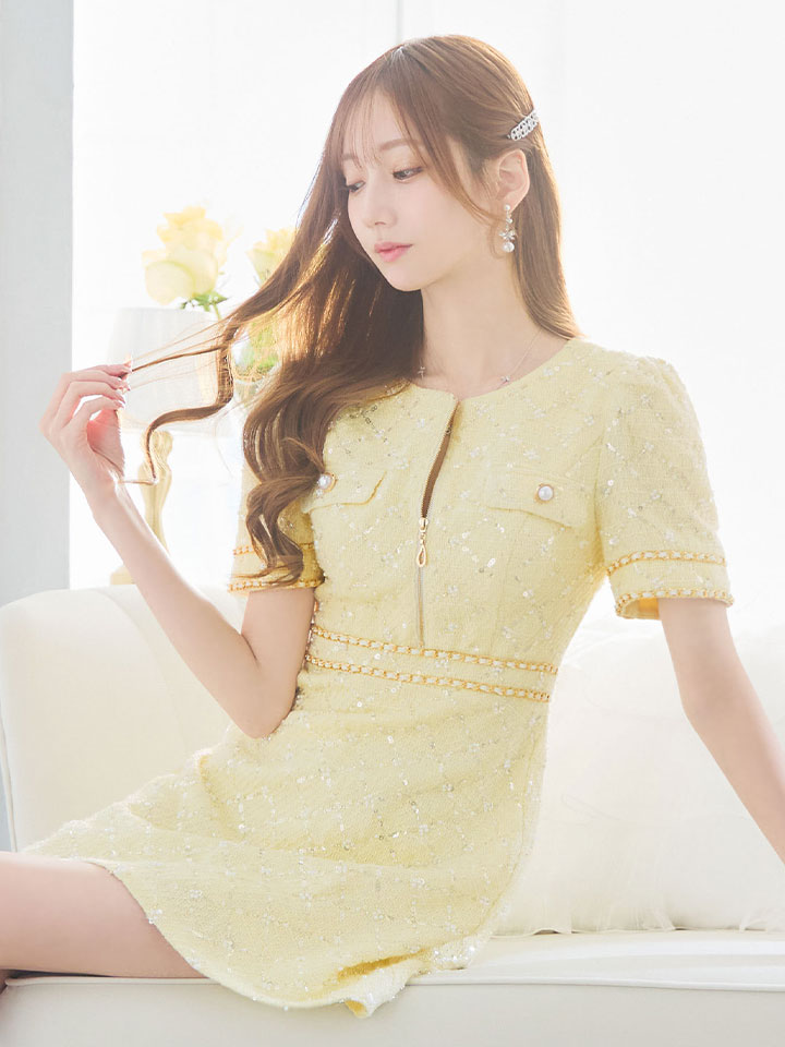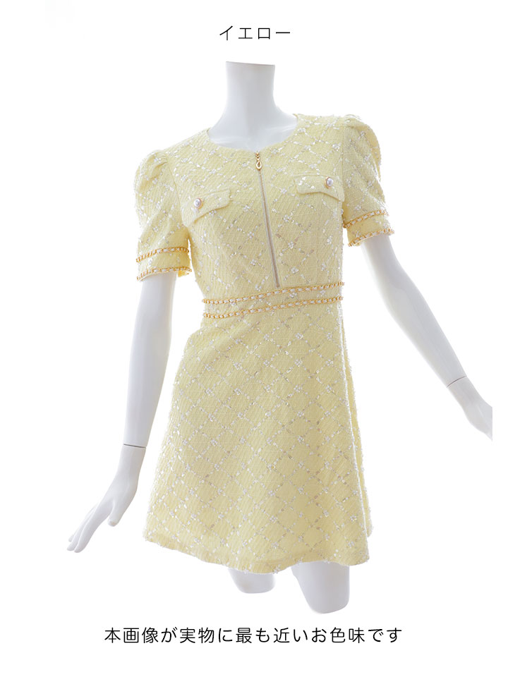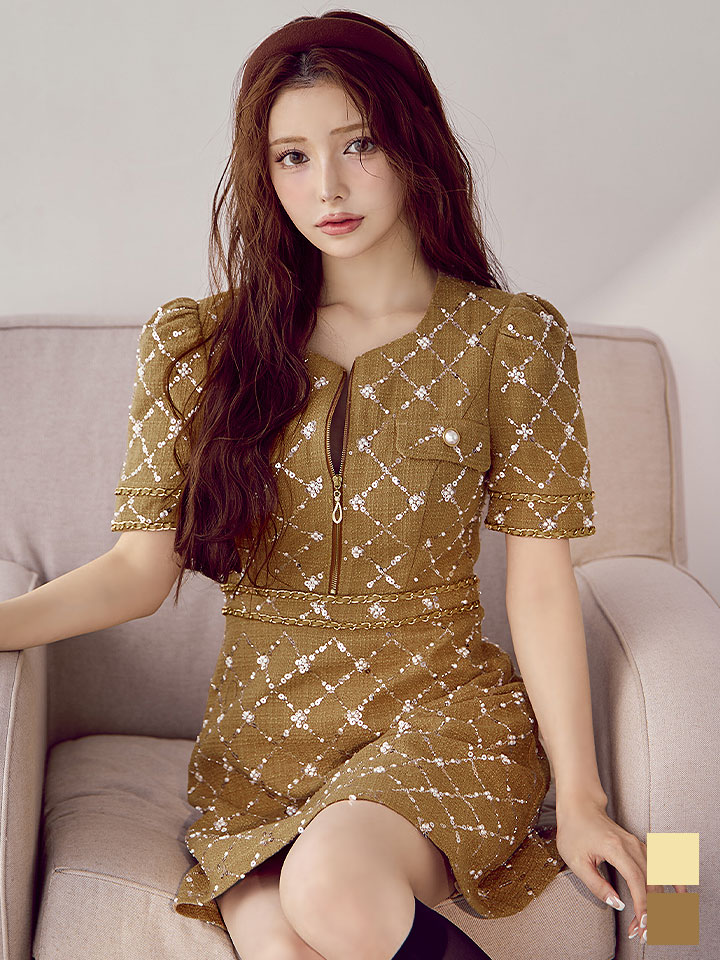 送料無料!フロントジップパールスパンコールツイードワンピース/キャバドレス【XS-Lサイズ/2カラー】[OF01A] 【SB】dzc【一部予約商品/10月下旬発送予定】 [IA8343SBdzc-250908-1]