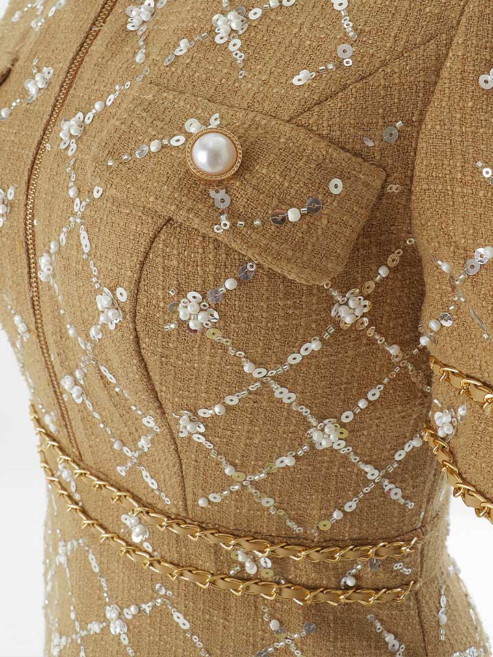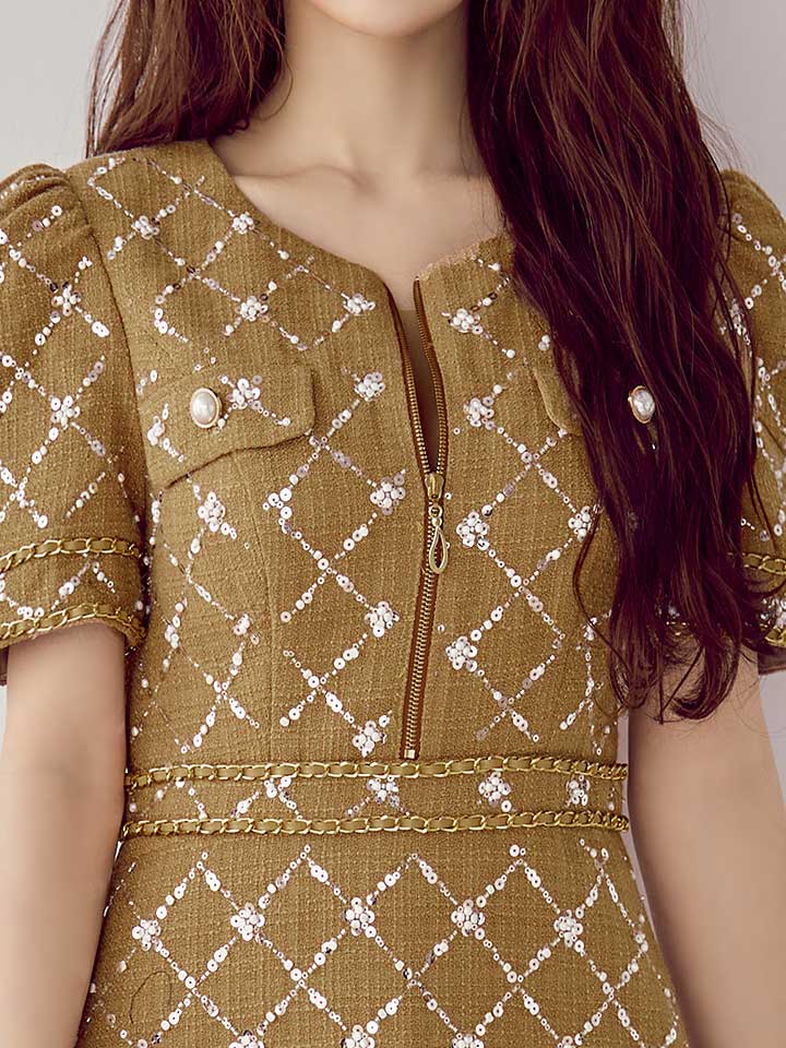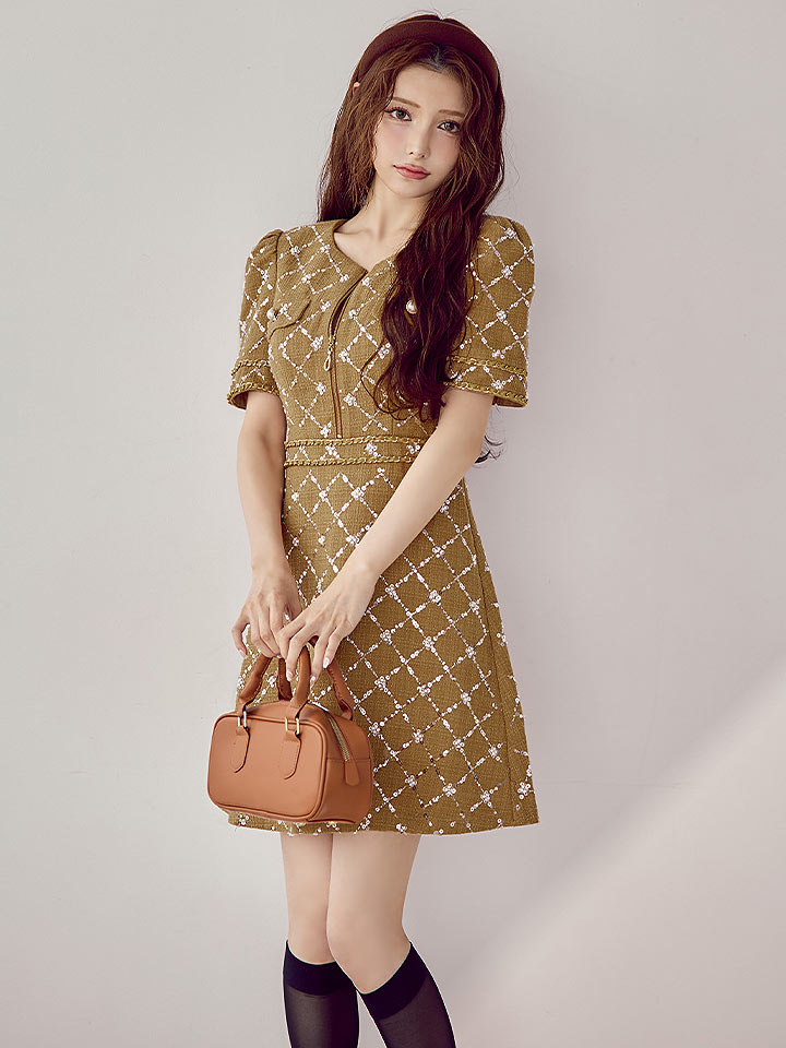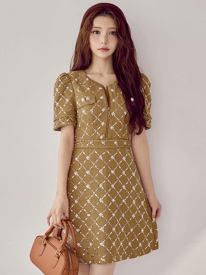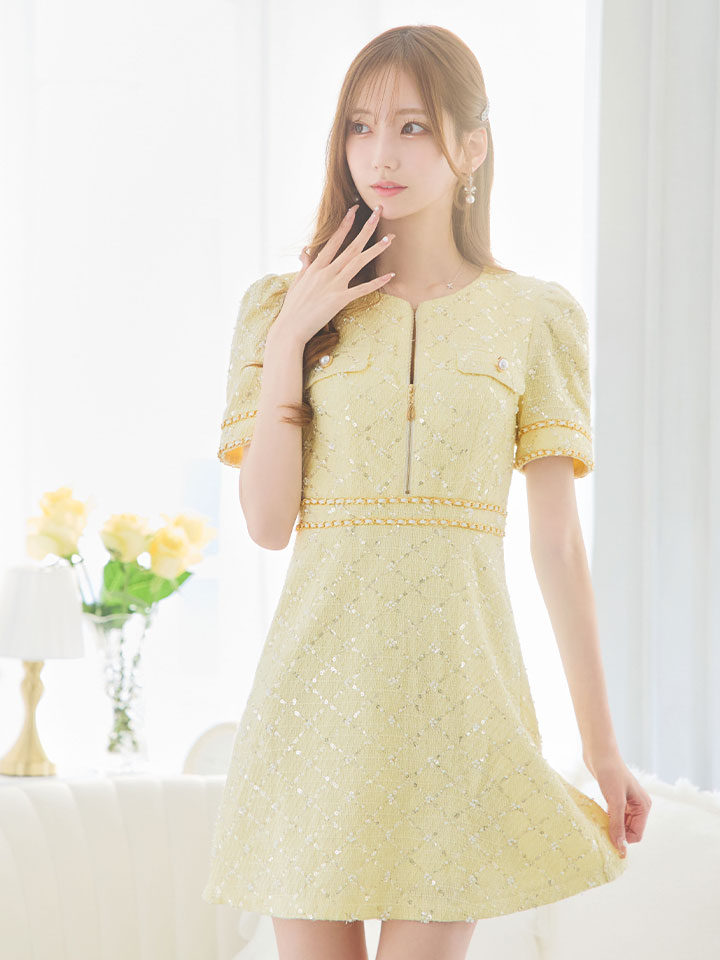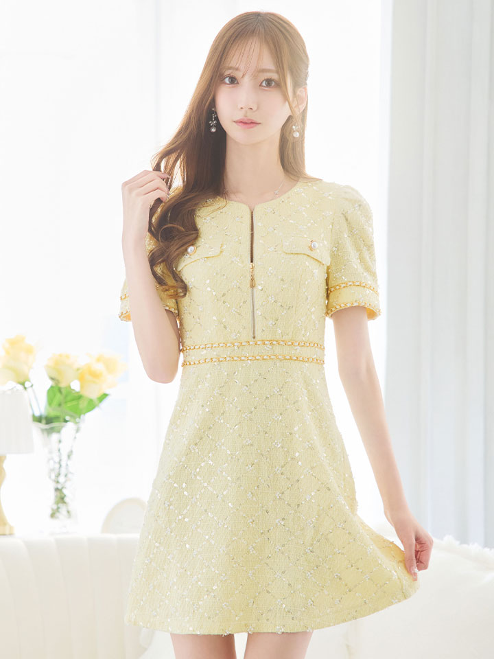送料無料!フロントジップパールスパンコールツイードワンピース/キャバドレス【XS-Lサイズ/2カラー】[OF01A] 【SB】dzc【一部予約商品/10月下旬発送予定】 [IA8343SBdzc-250908-1]