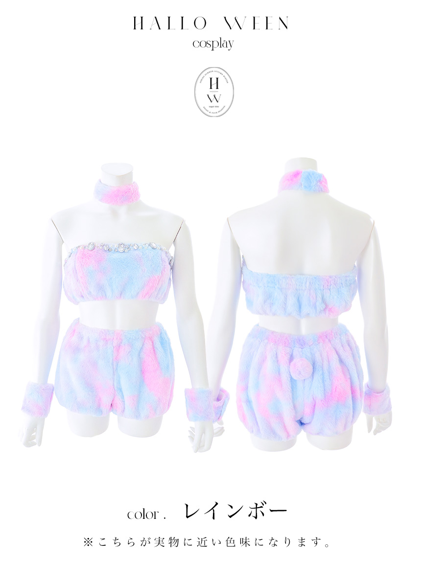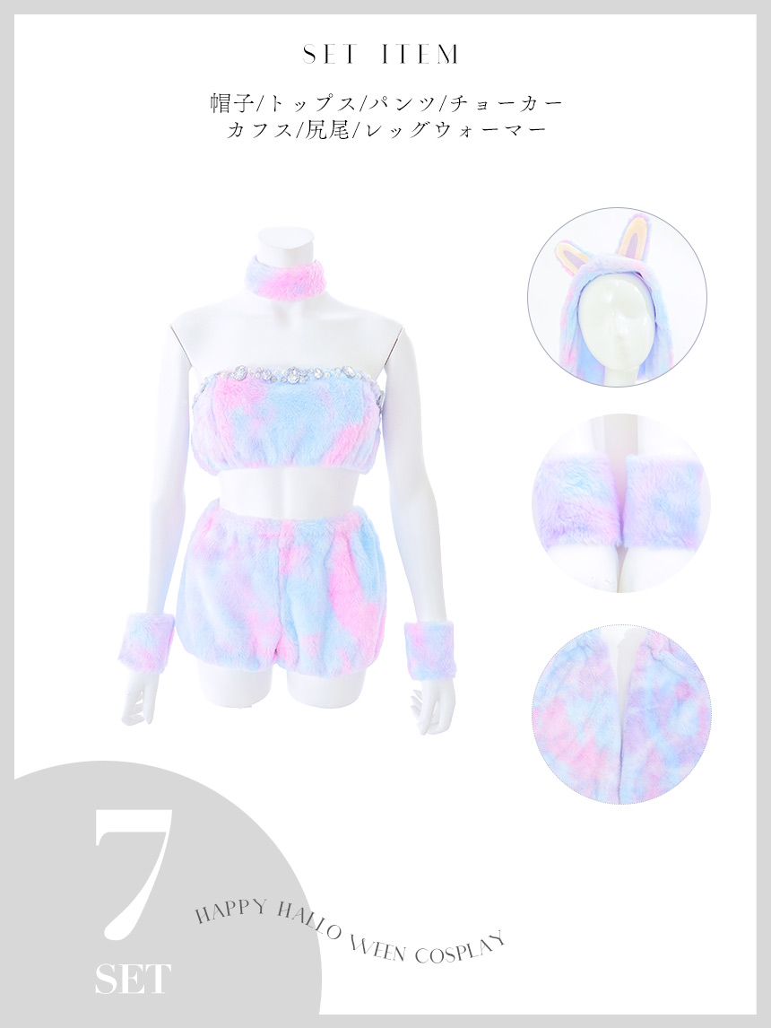 【即日発送】【ハロウィン】パステルもこもこバニー【コスプレ7点セット】【フリーサイズ/6カラー】[OF03] [HW-253-SB-dzwj-Rainbow-25YM]