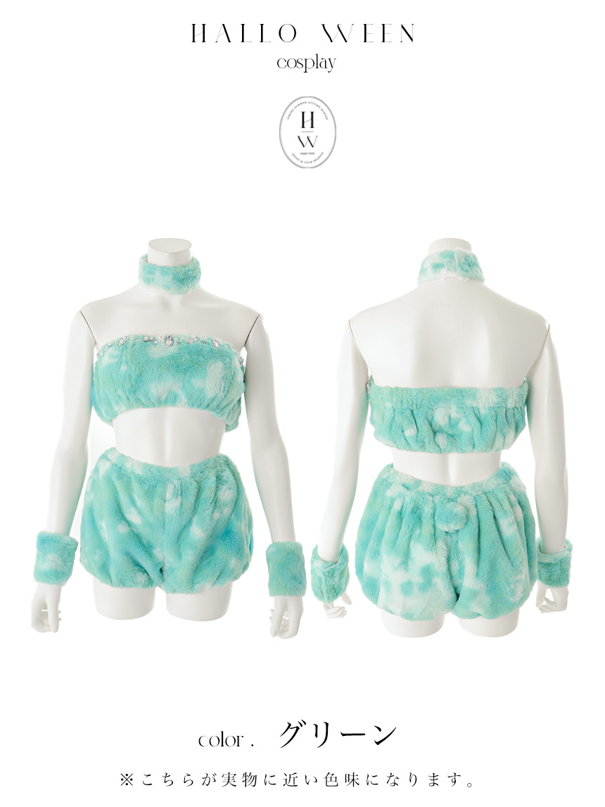 【即日発送】【ハロウィン】パステルもこもこバニー【コスプレ7点セット】【フリーサイズ/6カラー】[OF03]